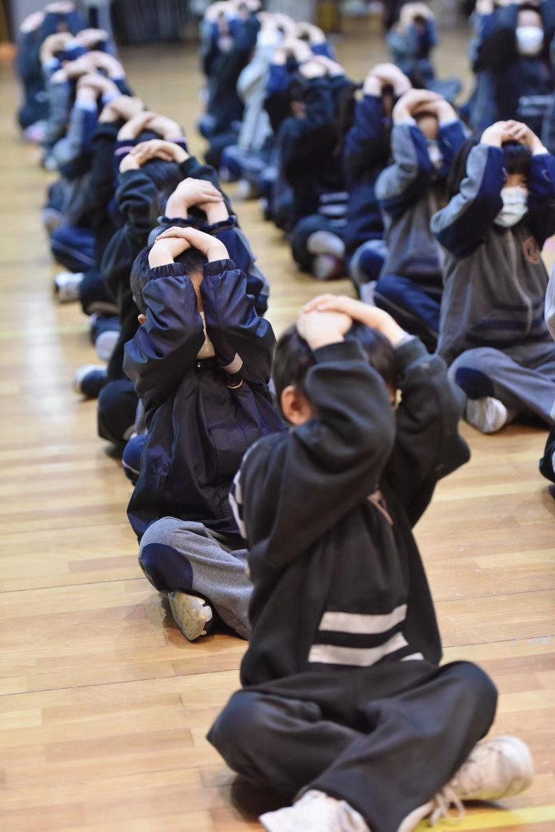 “SOS”、“抱頭”、“示意”、“臥倒”這些基本的自護動作,一年級萌寶們是第一次學(xué)習(xí),可認真了呢!