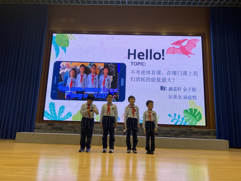 三(3)班的盛嘉軒,金子俊,匡奕名和湯宸愷四位小朋友研究的課題是“不考慮體育課,哪門課上我們消耗的能量最大?”。對(duì)于這個(gè)課題,他們小組采用了兩種不同的研究方法,一種是計(jì)算不同課程上課之前和上課之后的溫差,另一種是查閱各種活動(dòng)所消耗的能量,對(duì)應(yīng)在上課過(guò)程中同學(xué)們的行為進(jìn)行計(jì)算。在之后的分享過(guò)程中,他們就“One question Two solutions”如何在一個(gè)問(wèn)題的研究中,利用兩種不同的方法進(jìn)行相互佐證與大家做了交流。