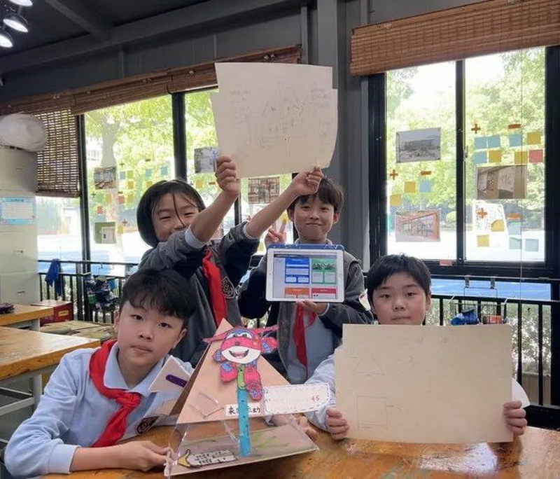 四(1)班第二小組運(yùn)用可塑土和木板等材料制作了一個(gè)三角錐模型,用連桿機(jī)構(gòu)演示了大風(fēng)對(duì)小朋友最感興趣的ipad的危害、大風(fēng)和風(fēng)力發(fā)電的比較等問(wèn)題,既生動(dòng)又有趣!