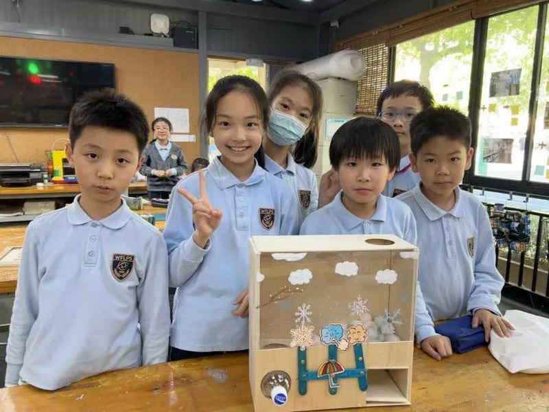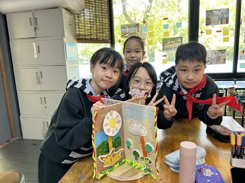 經(jīng)小組討論,篩選出弟弟妹妹容易理解的內(nèi)容,并學(xué)習(xí)運(yùn)用平面連桿的運(yùn)作原理,制作有關(guān)極端天氣的科普裝置,你們瞧!
