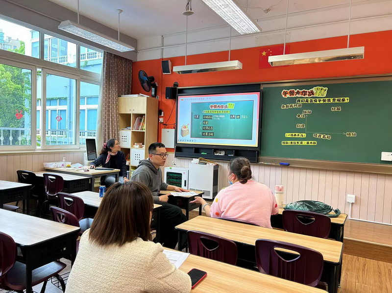 三年級學習統計單元的條形統計圖(二)。課前,數學備課組老師針對單元整體教學進行交流,頭腦風暴,并確定單元內容和活動主題,最終結合生活實際,以“午餐大作戰”為主題——來推進條形統計圖的學習過程。