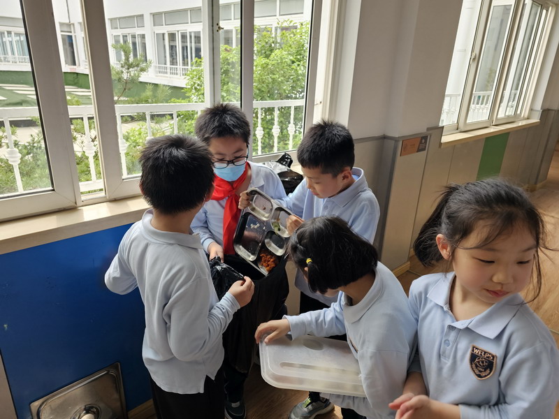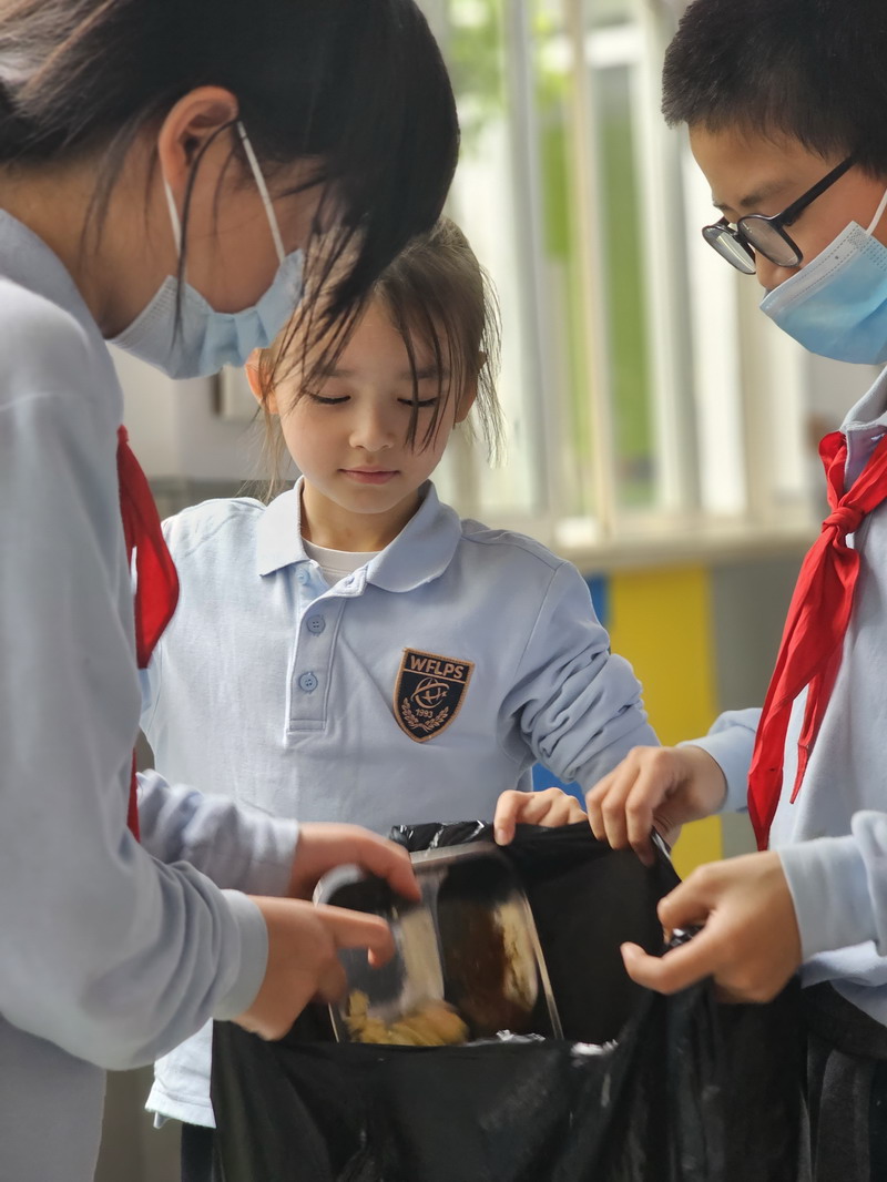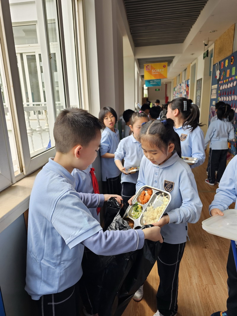 再回顧到我們在學校的每日午餐,由學生自主地展開討論:怎么樣才能確定我們的午餐是否浪費?課后收集資料來確定每人每日午餐剩多少算是浪費?