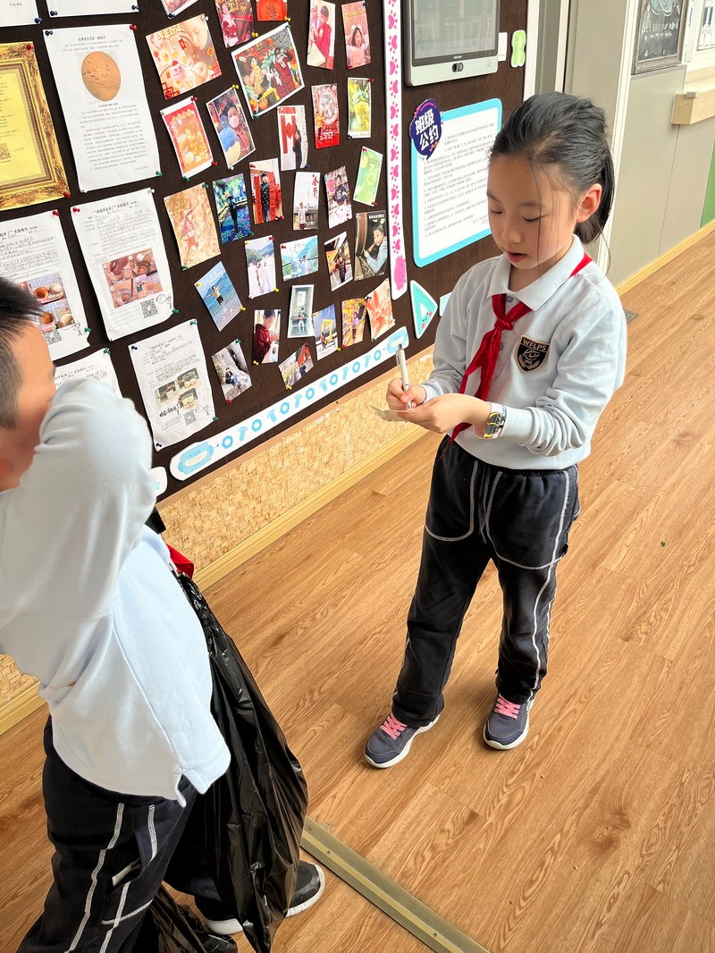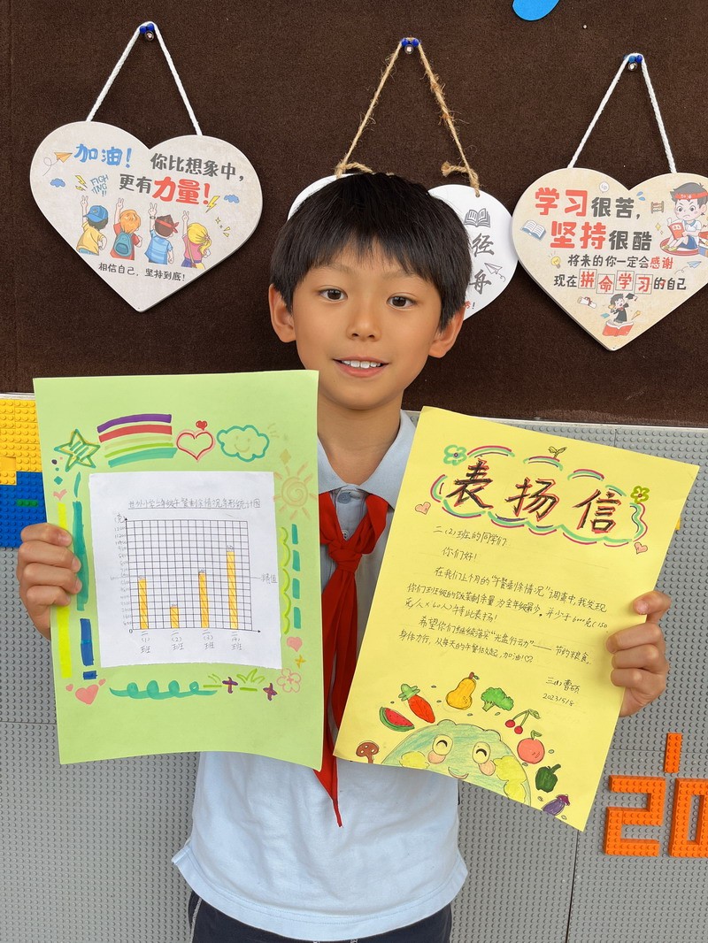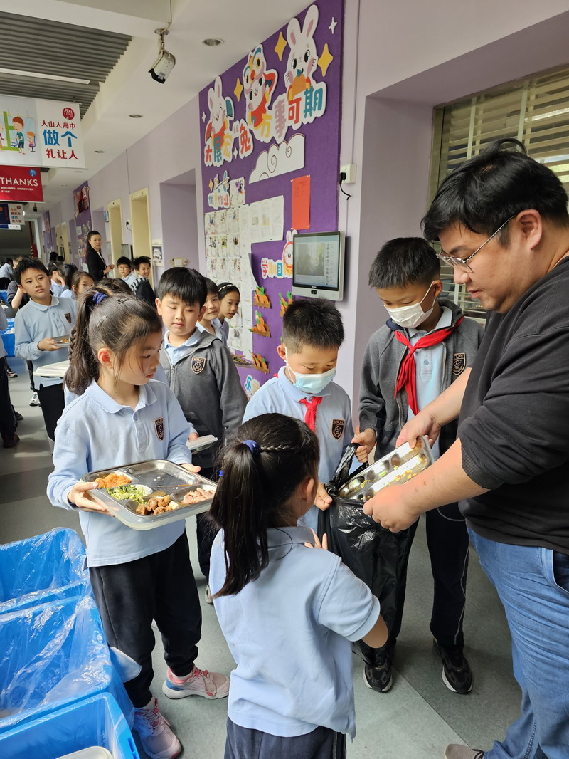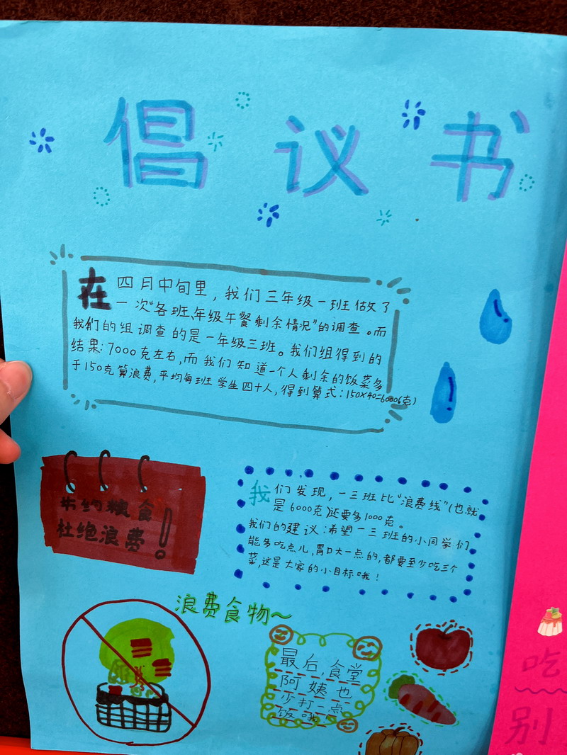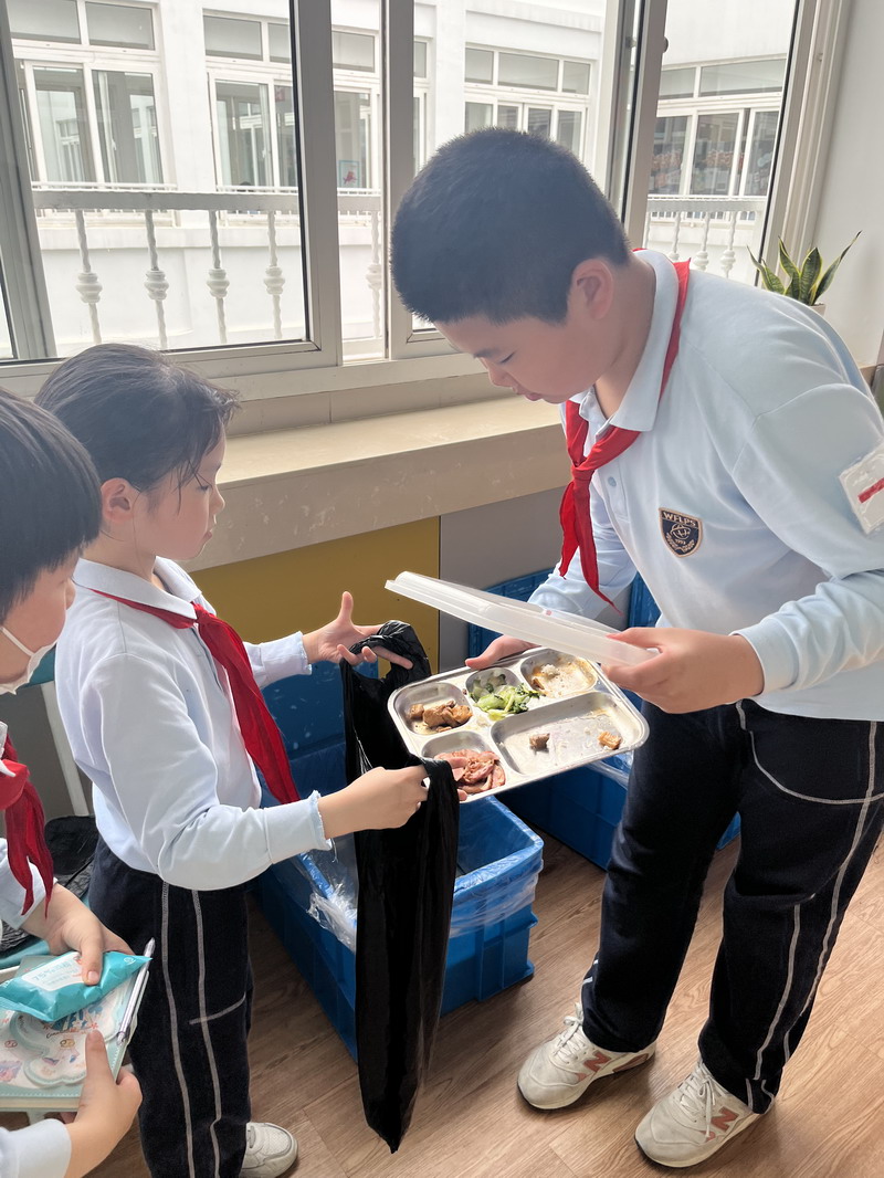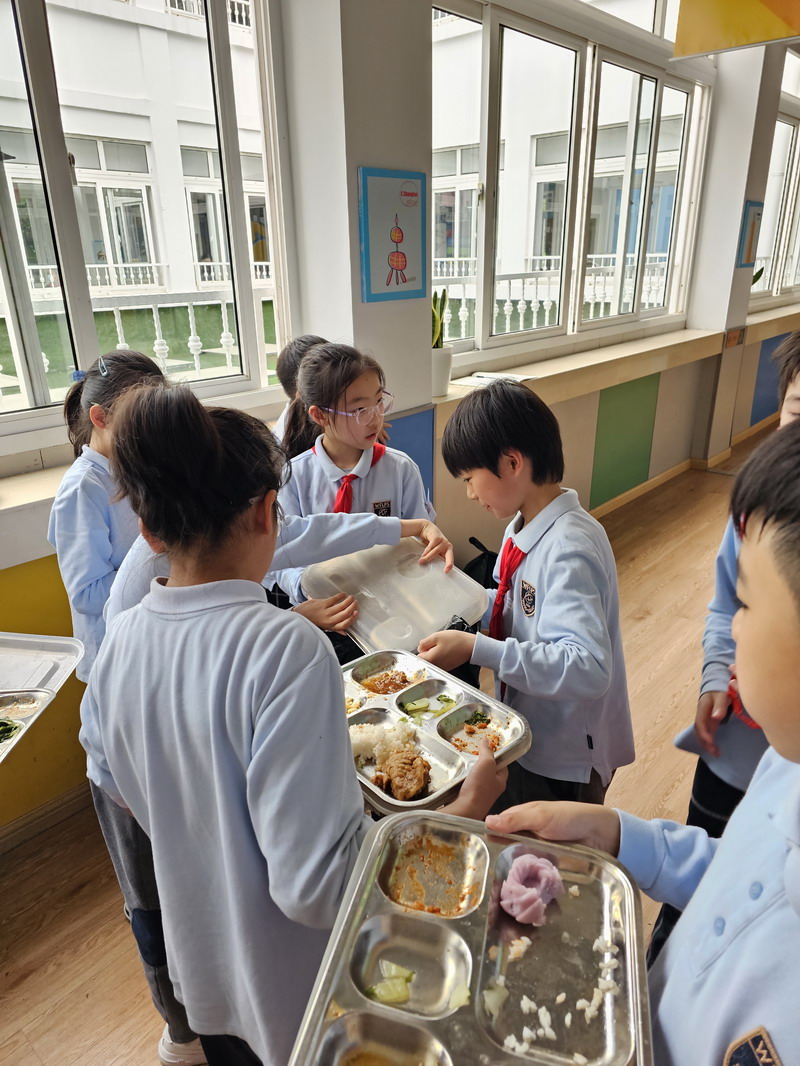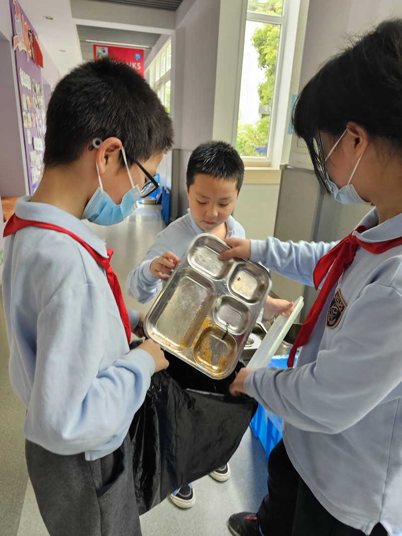 于是,學生們把各班中午剩余飯菜進行了收集和秤量,記錄下每個班級的糧食剩余量。
