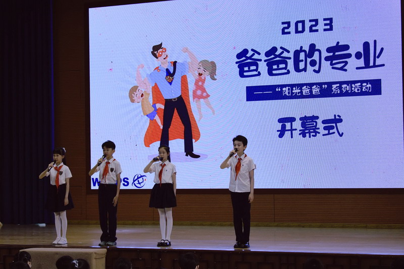 5月16日早上,“陽光爸爸”系列活動之四年級“爸爸的專業”講座拉開了序幕。開幕式上,16位來自不同領域的爸爸進行了簡短的自我介紹。他們中有核反應堆的研究員、電動船的設計師、人工智能的工程師、外科醫生、投資分析師、建筑設計師、律師和警察叔叔、導演和電臺主持人等。張校長、閔校長向爸爸們贈送紀念卡,少先隊員代表向他們獻上了崇高的敬禮。