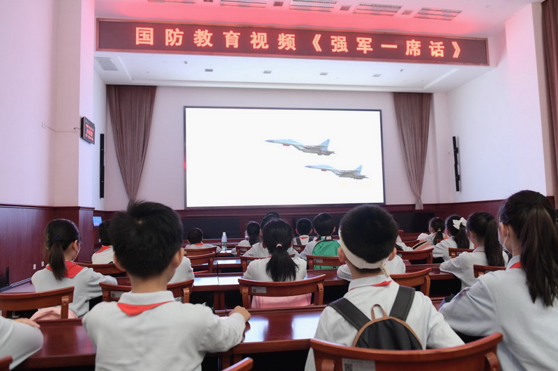當天下午,在四1班叮當爸爸的精心安排下,孩子們興高采烈地來到某部隊,觀看了國防教育視頻——《強軍一席話》,了解了人民軍隊新時代的壯闊征程,感受到只有掌握先進的科學技術,才能實現強軍夢。同時激發了孩子們的愛國熱情,明白從小刻苦學習,掌握真本領,長大才能護佑家國安寧。