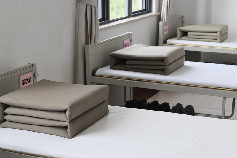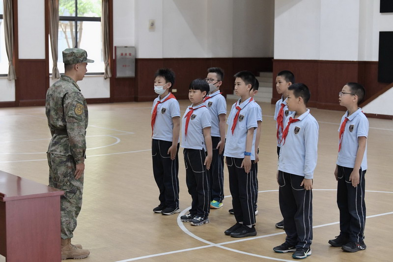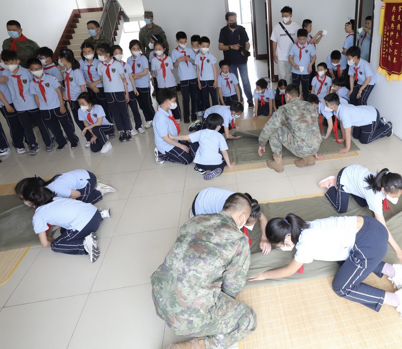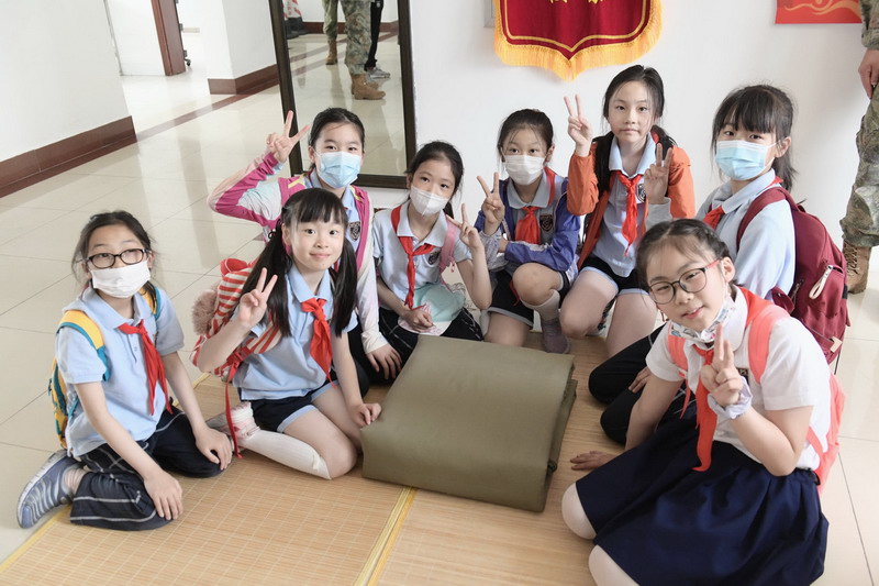 參觀軍務時,看到戰士們的宿舍干干凈凈,整整齊齊,孩子們不禁嘖嘖稱贊:“被子疊得太整齊了……怎么能疊得這么方方正正的?”“每個衣櫥里的衣服掛的順序都是一樣的呢!”在跟著戰士們學疊軍被的時候,才感受到疊被子也不是一件簡單的事,真正體會到軍人的生活是如此的艱苦樸素,如此的嚴謹規范。