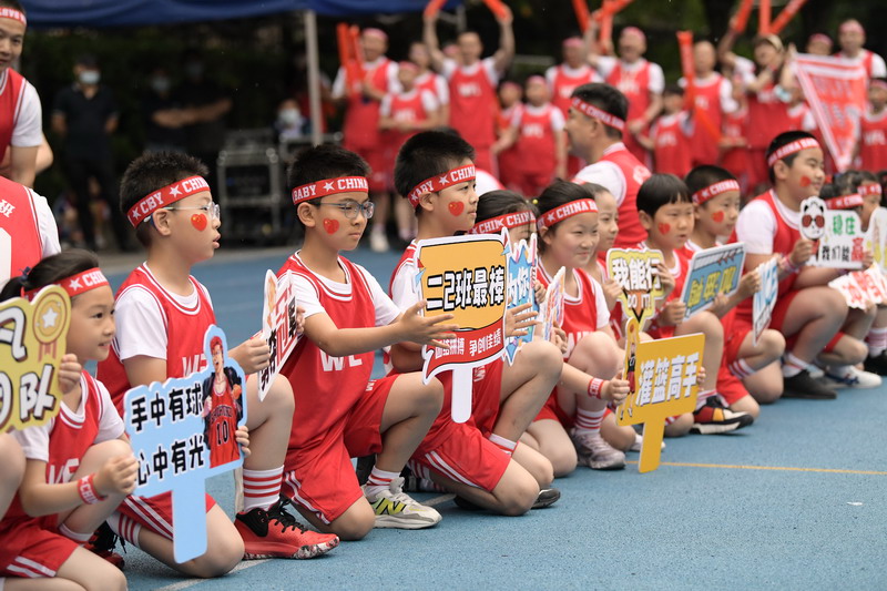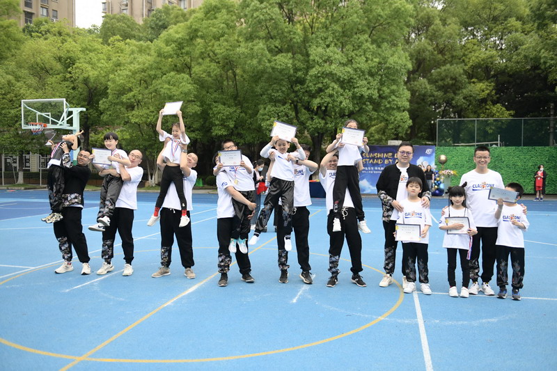 腳踏晨曦,身披霞光,接下來入場的是洋溢著青春氣息的二2班高手灌籃隊!二2班的全體爸爸攜孩子們帶給大家一場沉浸感的熱血籃球賽。