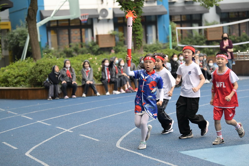 精彩紛呈的入場式過后是“爸爸的運動鞋”火炬接力儀式。“爸爸的運動鞋”火炬接力,象征著團結合作和勇敢堅強的意志品質的傳承。火炬就像是希望和夢想,無論將來孩子們走到哪里,都會堅定夢想,勇往直前!
