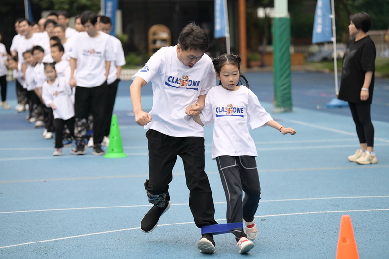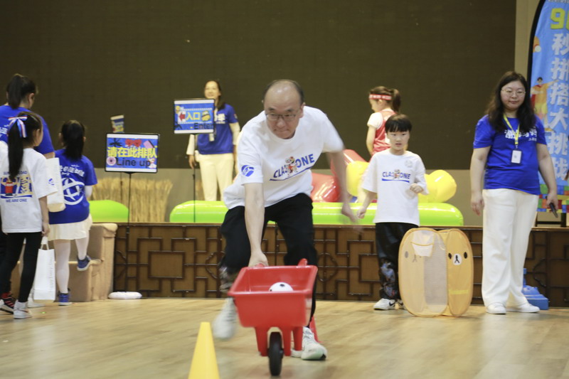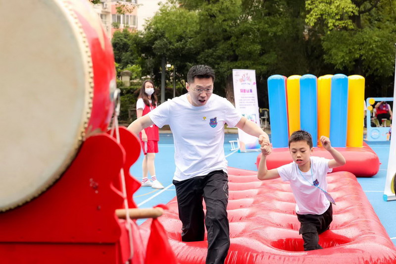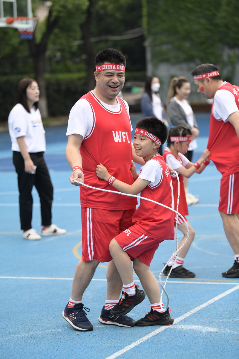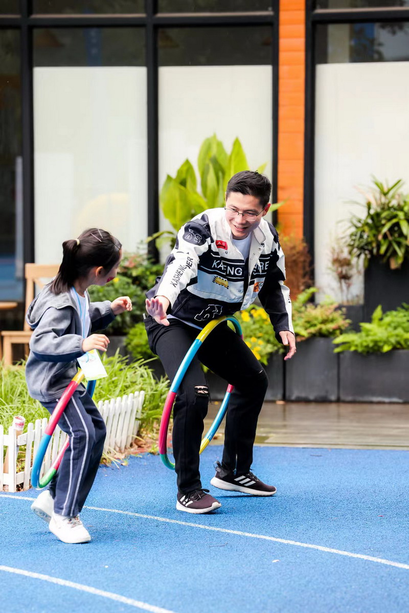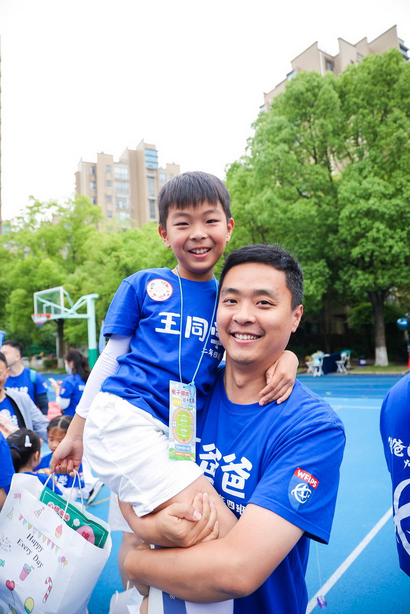 接下來是親子游戲時間。孩子們牽起爸爸的手,開始了游戲之旅。十二個形式多樣的親子活動打卡處,充滿了歡聲笑語。