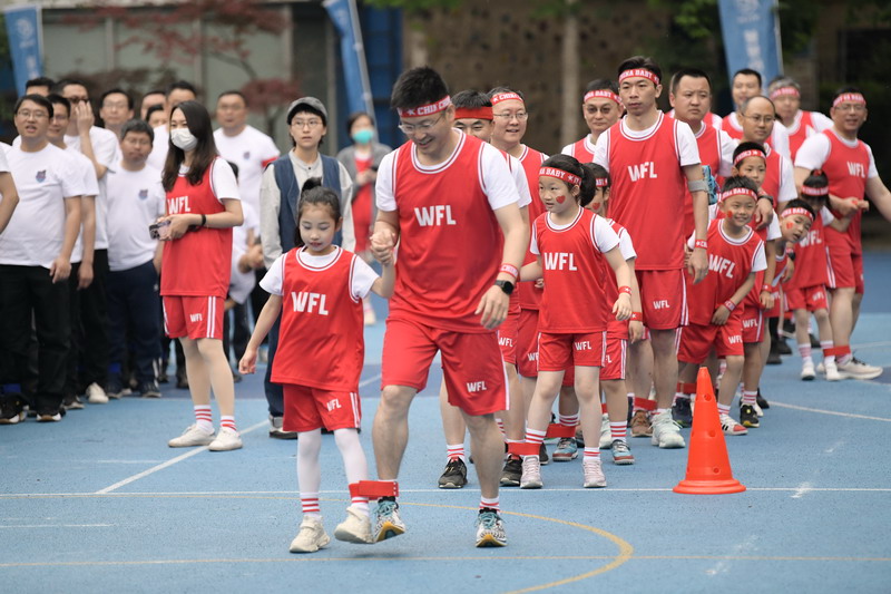 在看過爸爸和孩子們的精彩合作之后,接下來進行的是兩人三足比賽。這項比賽以班級為單位,人數眾多,需要眾人齊心協力才能完成比賽,更加考驗親子之間的默契程度呢!