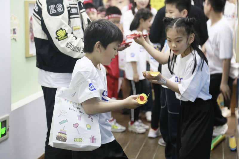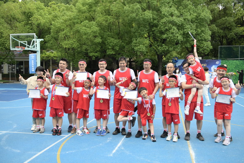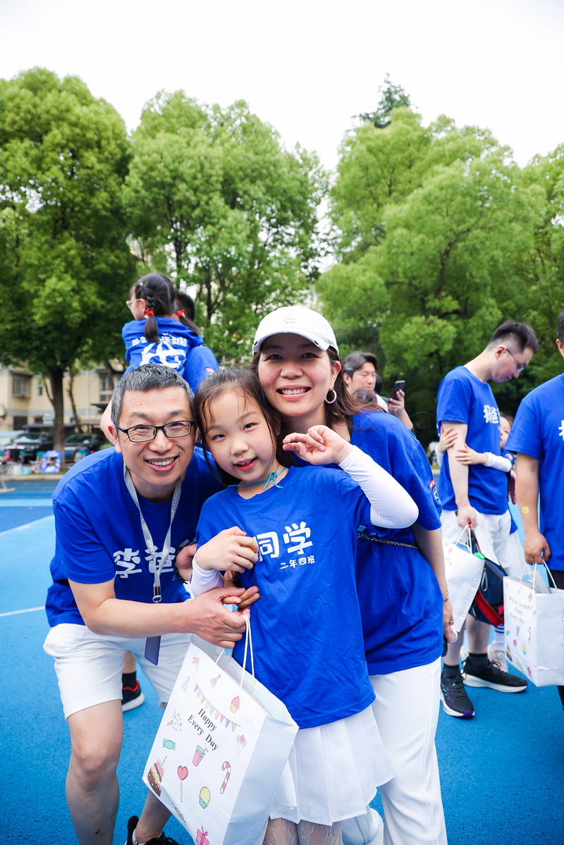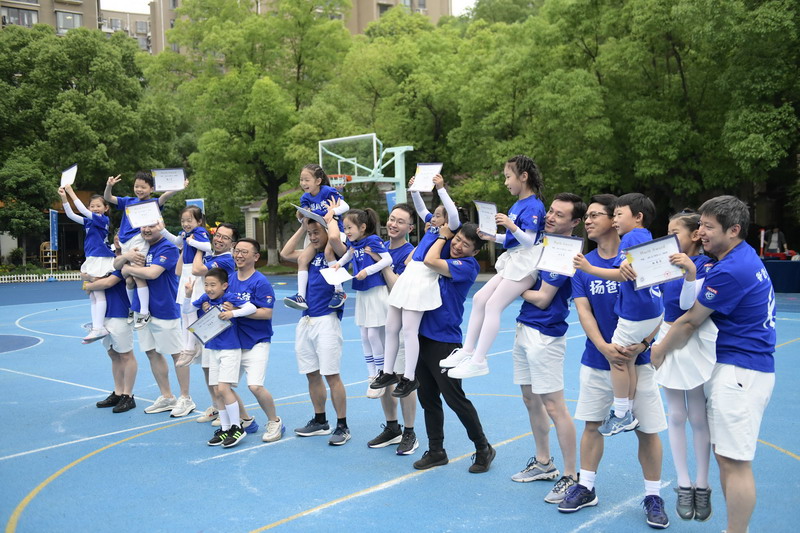 比賽結束,張校長和閔校長為各項目的冠軍爸爸和孩子進行頒獎。
