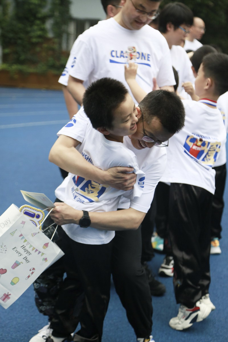 天空雖飄落細雨,但是世外的操場格外熱鬧,小朋友們的心情格外燦爛。因為世外迎來了一群特殊的“運動員”,他們在操場上奔跑、跳躍、吶喊……他們就是二年級的陽光爸爸們。