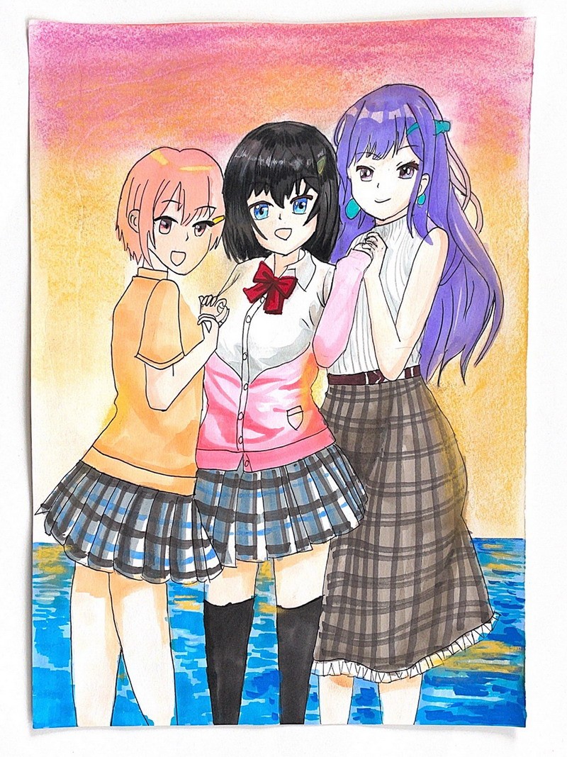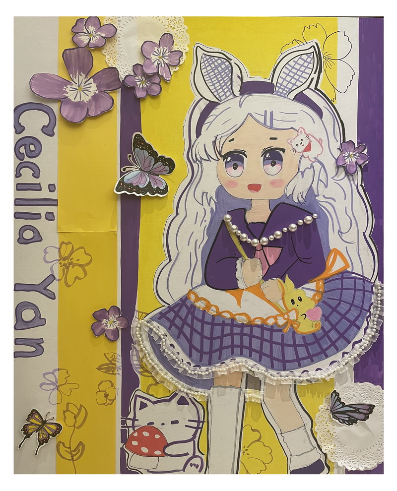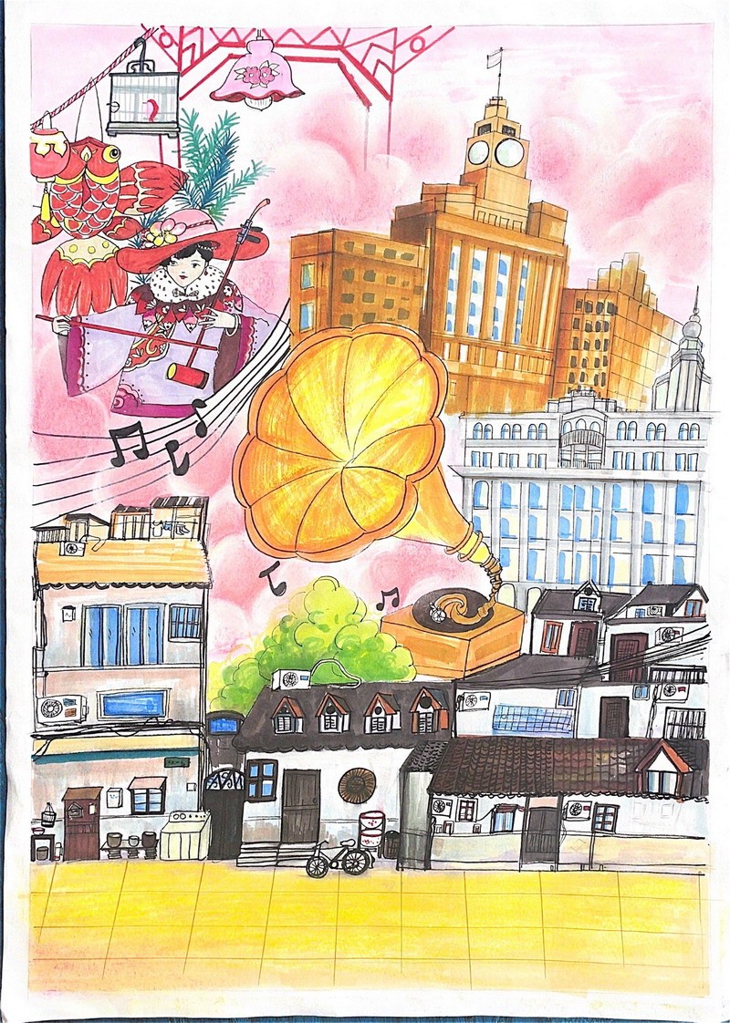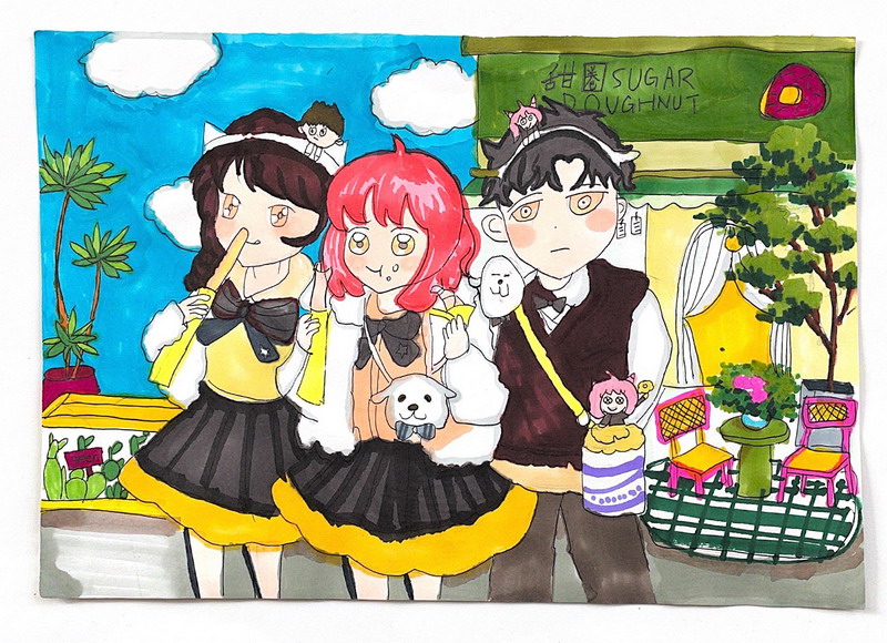 云邈說(shuō):她二年級(jí)就開(kāi)始學(xué)習(xí)國(guó)畫(huà),三年級(jí)學(xué)習(xí)漫畫(huà),后來(lái)又學(xué)習(xí)油畫(huà)。但隨著年紀(jì)增高,繪畫(huà)漸漸成了忙里偷閑的事。因此,這次展出的大部分畫(huà)作都是四年級(jí)以前的,顯得十分稚嫩?,F(xiàn)在,雖然學(xué)習(xí)壓力很大,但我還在堅(jiān)持繪畫(huà):有空時(shí)畫(huà)一些小插畫(huà),在學(xué)校幫同學(xué)畫(huà)黑板報(bào),等等。幾天前,我還找到了我幼兒園時(shí)的畫(huà),雖然對(duì)于現(xiàn)在的我不忍直視,但這也算是一種熱愛(ài)呢!