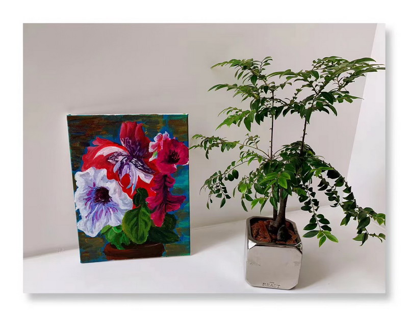 此次畫(huà)展她精心挑選了20幅有代表性的畫(huà)作。從以前的童真童趣,到后來(lái)的臨摹名作,筆尖涂抹之間,提筆描摹之時(shí),畫(huà)作的色彩光影已經(jīng)照亮了她自己的一片藝術(shù)天地。