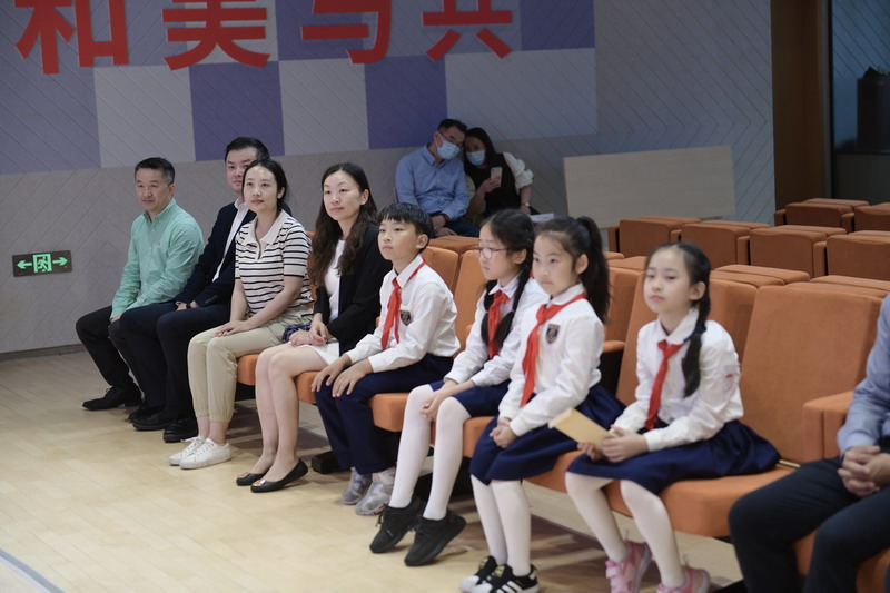 接著我校家長代表章爸爸介紹了本次義賣活動的體驗與收獲,大隊輔導員胡老師介紹了活動目的及善款用途,胡弢代表康健街道黨工委介紹了教育黨建聯盟的相關工作,家、校、社合力,共同打造樂美康健。