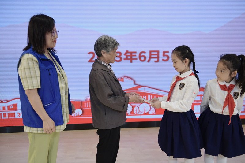 首先,家委會代表和學生代表向困難孤老捐贈幫扶款,孤老代表緊緊握著學生的手表示感謝,學生代表們也深刻感受到了此次愛心活動的意義。隨后,胡弢向世外小學師生頒發捐贈證書。
