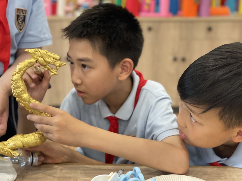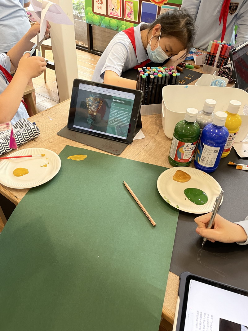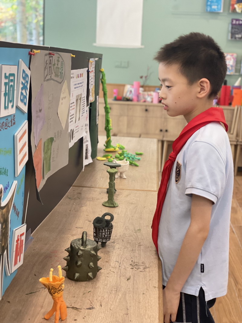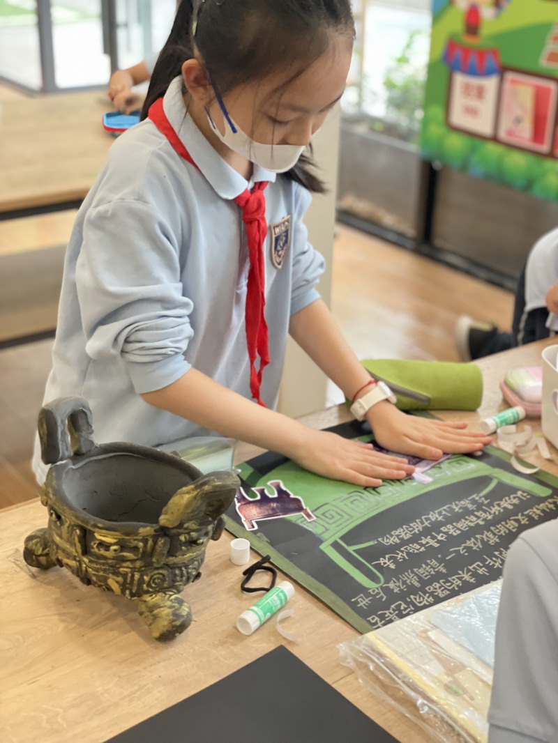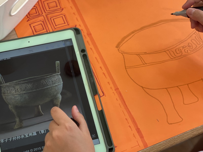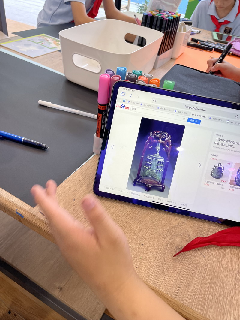 如果要在校園建造一座青銅博物館,需要幾個步驟?帶著這樣問題,在暑期即將來臨的最后一個月,四年級的同學投入了一場建造青銅博物館的活動。美術課上,孩子們一邊了解什么是青銅,青銅的器形、種類、紋樣以及背景故事,一邊尋找著自己感興趣的研究對象。