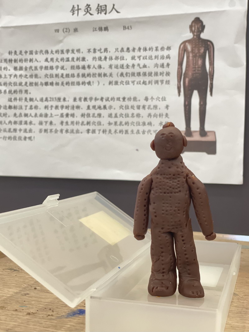當然,制作過程中也會出現些小意外,比如展品“銅奔馬”。根據重力,這么大的馬匹在一只燕子上很難立足。最后只能靠著兩只紙杯,才勉強讓馬站了起來。研究小分隊說:“老師,我們研究過了,這件文物出土時因為破損也站不住,是許多專家研究很久才復原的呢?!笔茄剑肋@可是東漢時期的文物,足以見得古人當時的智慧。