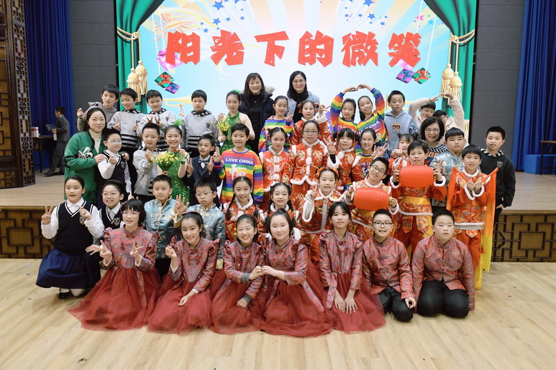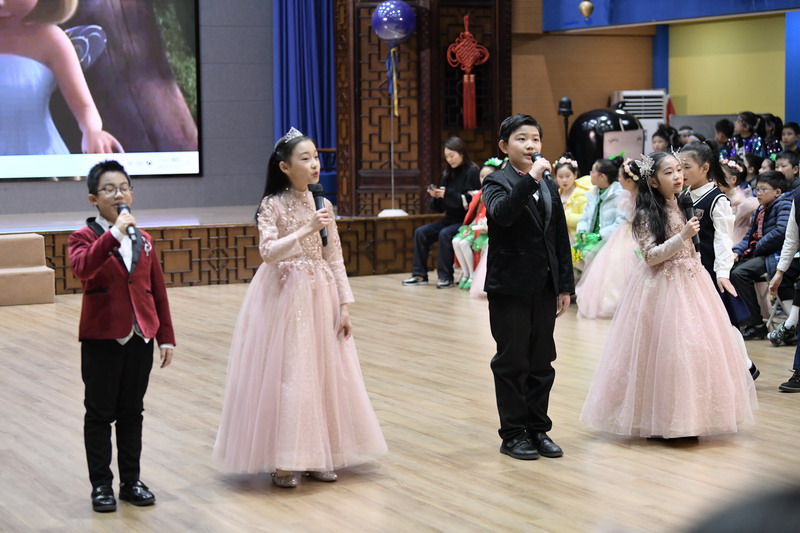 陽光下的微笑永遠燦爛,因為這是我們用心祈禱的祝愿;陽光下的微笑永遠美好,因為那是由敬愛的師長們用愛心澆灌,4個班的孩子們用英語歌舞拉開了晚會的帷幕。