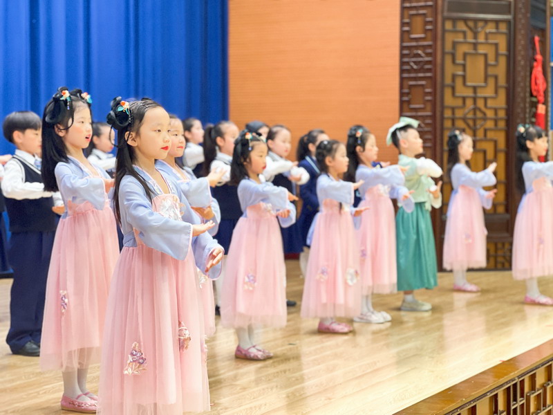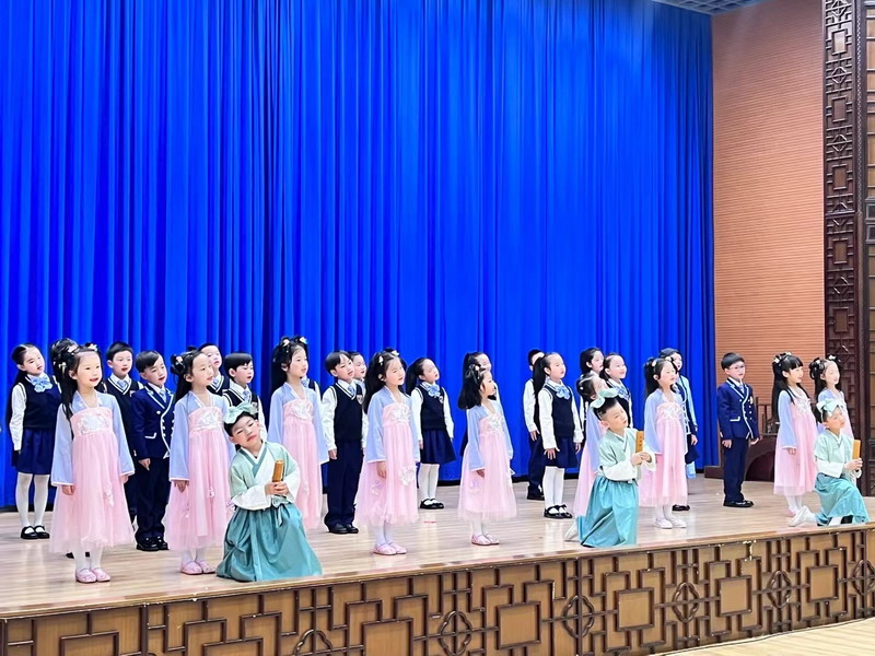 “千字韻文,涵蓋天文地理;四字短句,包羅世間萬象。它們蘊藏著悠久的歷史文化,演繹著不朽的風骨鏗鏘。”一年級的小萌娃們在老師的悉心指導下,以多種方式熱情地吟誦起《千字文》《三字經》《聲律啟蒙》,孩子們用最美的童聲誦讀國學經典,讓我們深深感受到傳統蒙學于童心的浸潤。