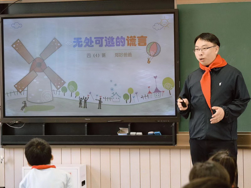 四2班的講座同樣精彩紛呈:范懿宸爸爸引領(lǐng)大家穿梭于人工智能的時空隧道;楊智凌爸爸揭秘了信息技術(shù)如何成為零售業(yè)的魔法棒;常瑞誠爸爸的講座以人生哲理激發(fā)勇氣;熊一霖爸爸從理論到示范,指導(dǎo)同學(xué)們實踐操作實用的急救技巧。