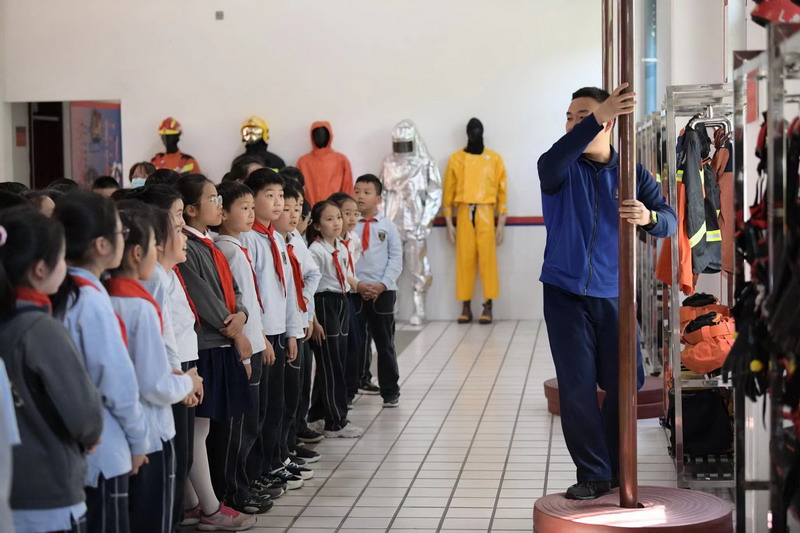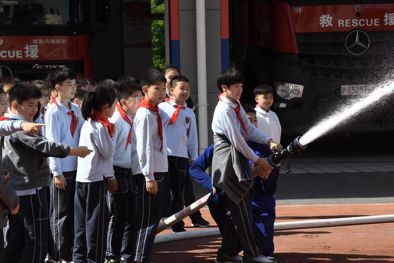 下午,同學(xué)們來到了漕河涇消防站。在四3班孫呈妍爸爸的帶領(lǐng)下,第一次走進了消防指戰(zhàn)員的練兵場所。同學(xué)們們在消防員叔叔們的帶領(lǐng)下實地參觀,近距離接觸消防設(shè)備,學(xué)習(xí)消防安全知識,體驗了消防員的日常生活與緊急救援技能,進一步增強了自我保護意識和應(yīng)急處理能力。