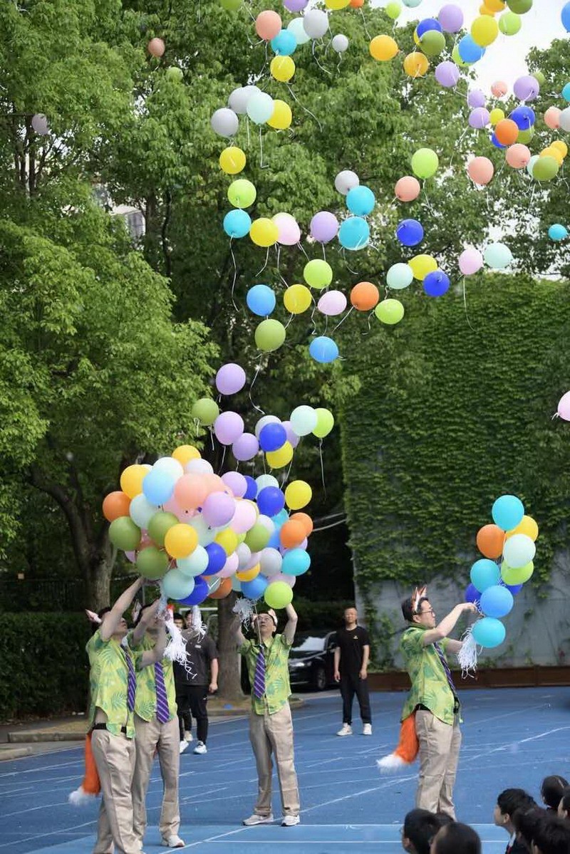 在莊嚴的火炬接力儀式后,張校長宣布本次活動開始,并和閔校張及家委們一起放飛夢想的氣球。