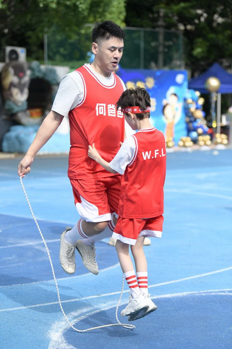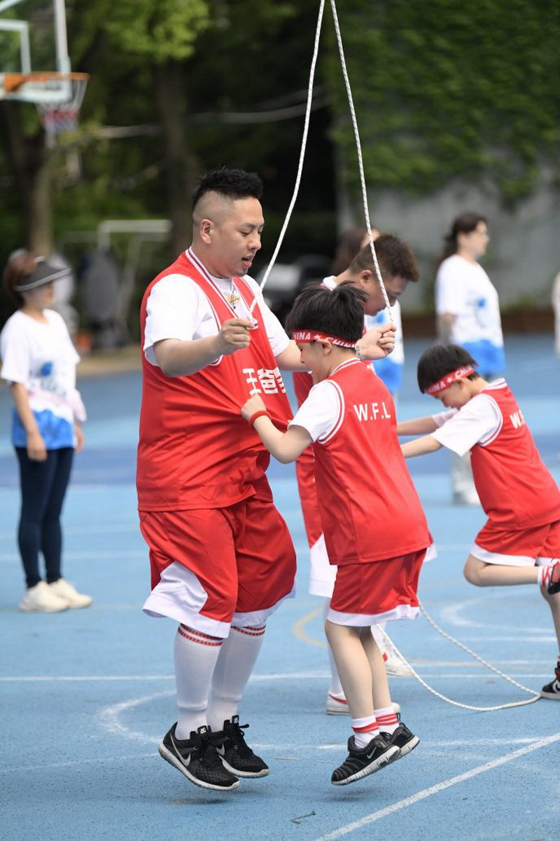 第二個環節是親子運動PK賽環節。第一個項目是親子跳繩比賽。孩子們和爸爸在家練習了這么久,實力都不容小覷,不僅有速度,合作得也非常默契。