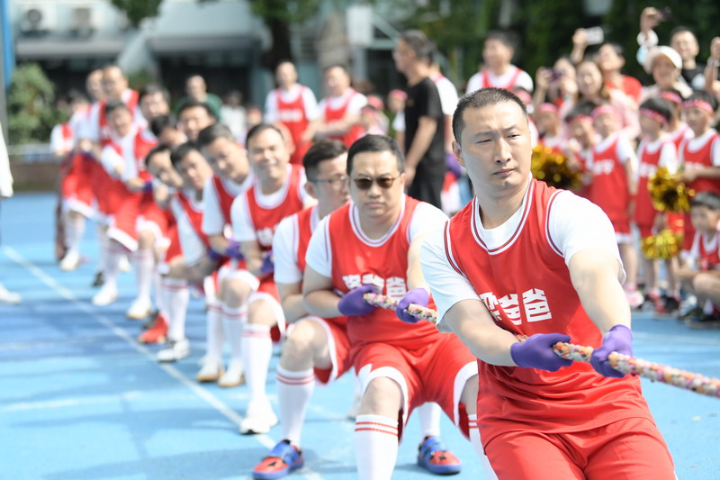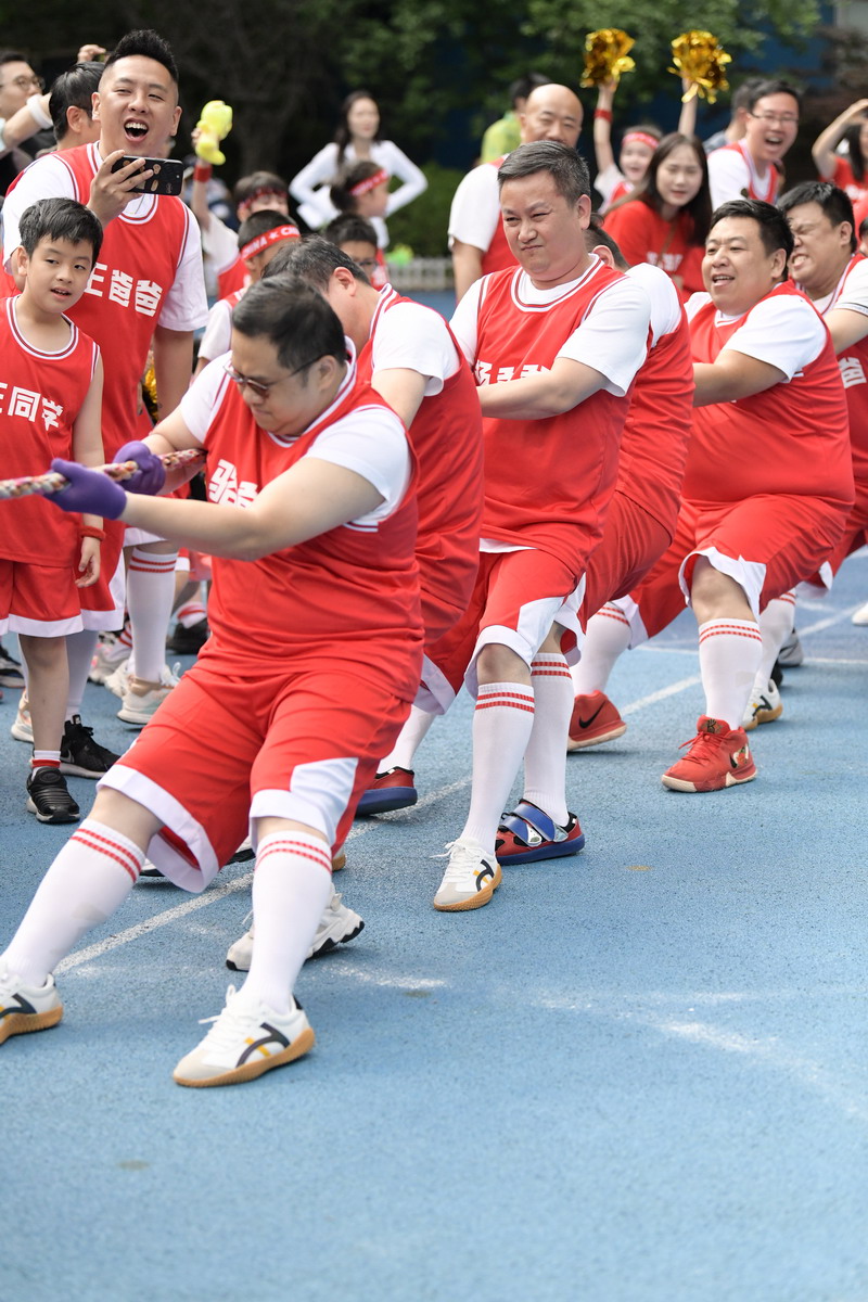 最精彩的是拔河比賽,這是四個班級重量級爸爸們的較量,不僅考驗爸爸們的力量,更加考驗團隊的凝聚力和意志力!場上的爸爸們拼盡全力,賽場上充滿了加油吶喊聲。