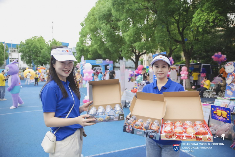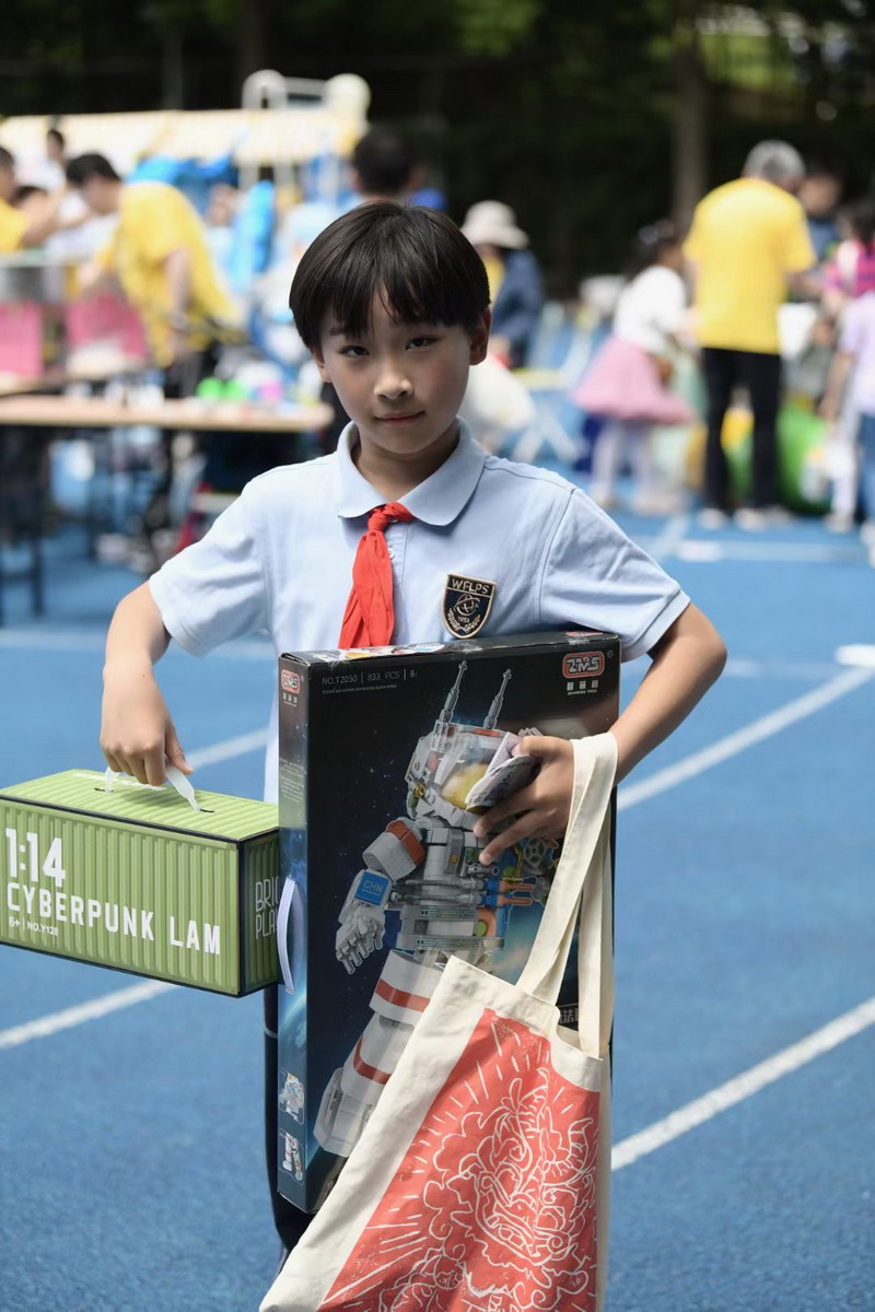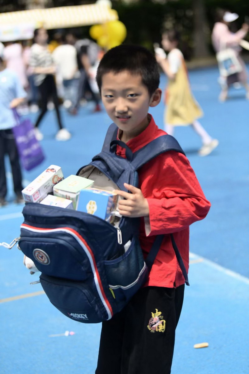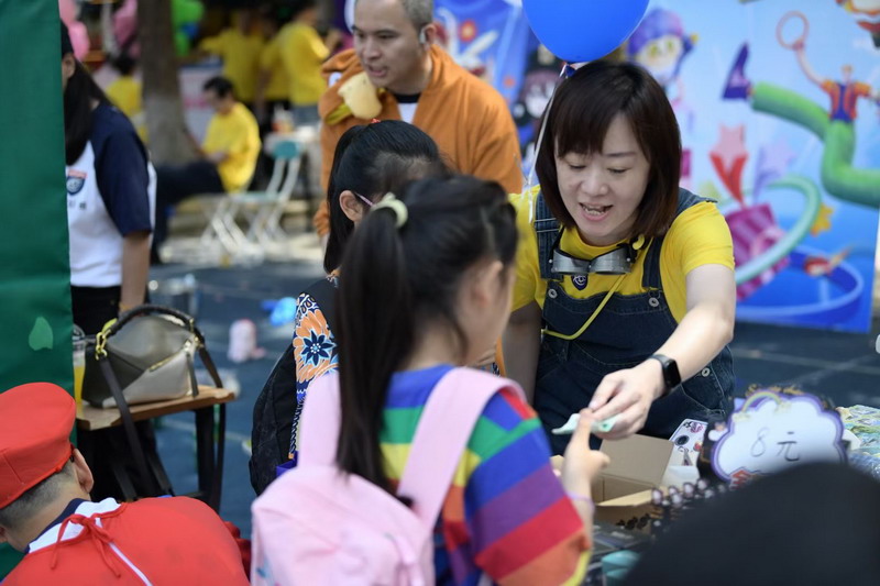 小朋友們三五成群擁到各個攤位,精挑細選,找尋自己心儀的物品。各個攤位前人頭攢動,歡聲笑語,整個校園成為了歡樂的海洋。