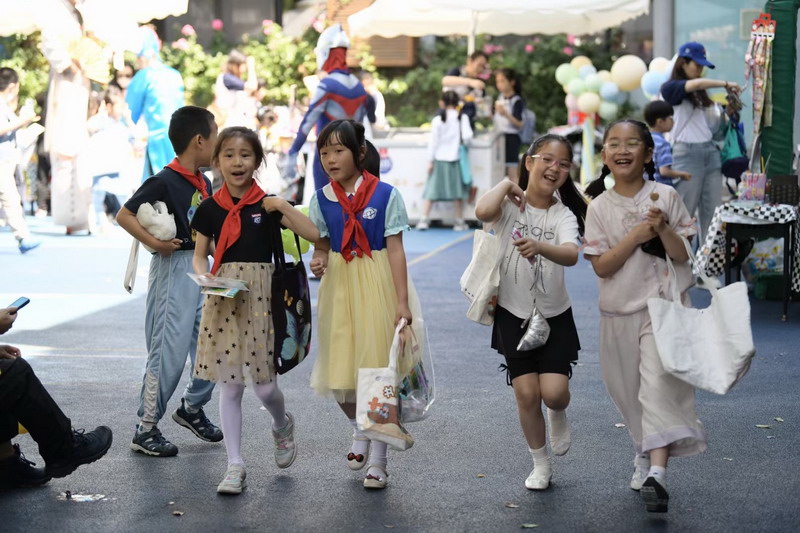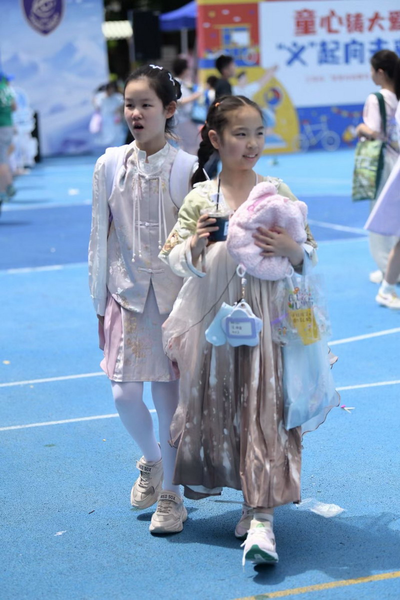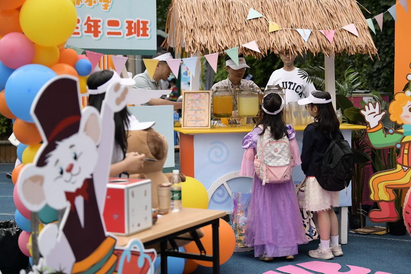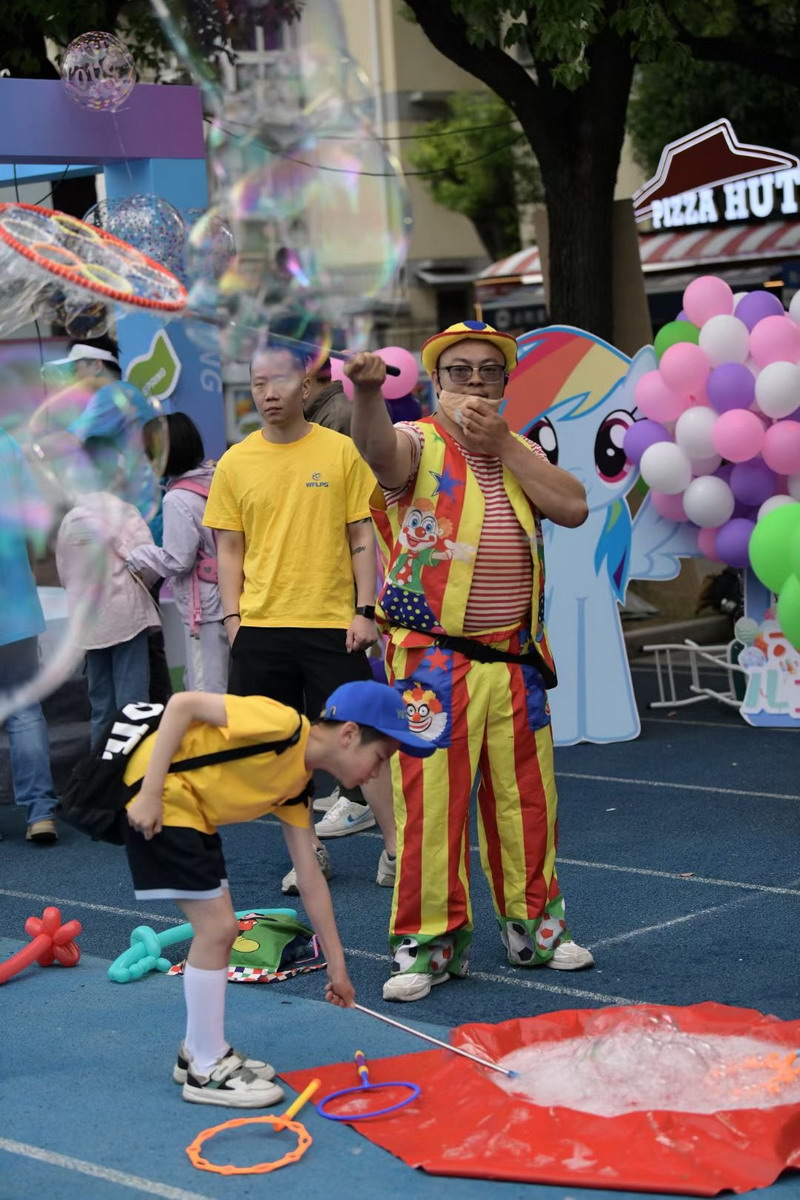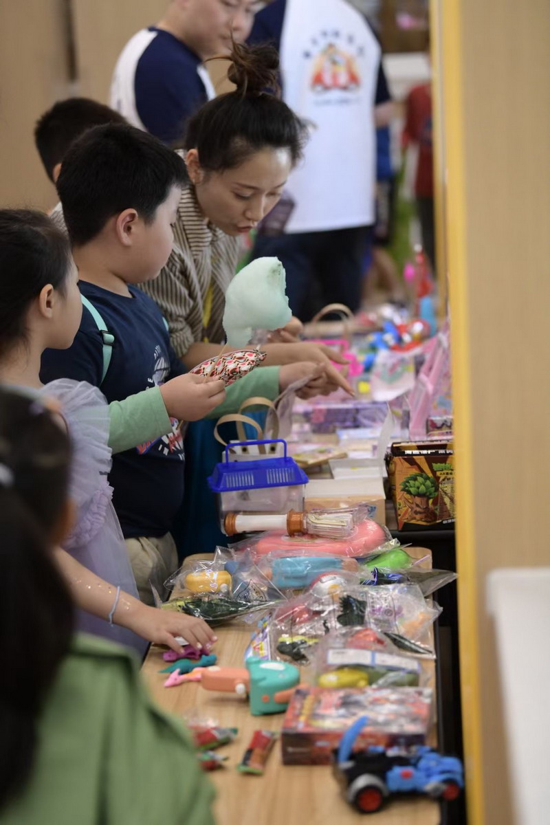 小朋友們三五成群擁到各個攤位,精挑細選,找尋自己心儀的物品。各個攤位前人頭攢動,歡聲笑語,整個校園成為了歡樂的海洋。