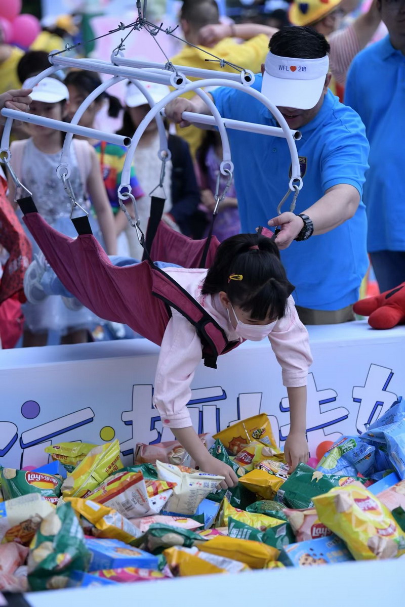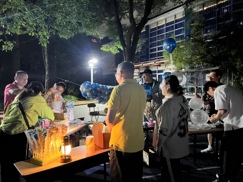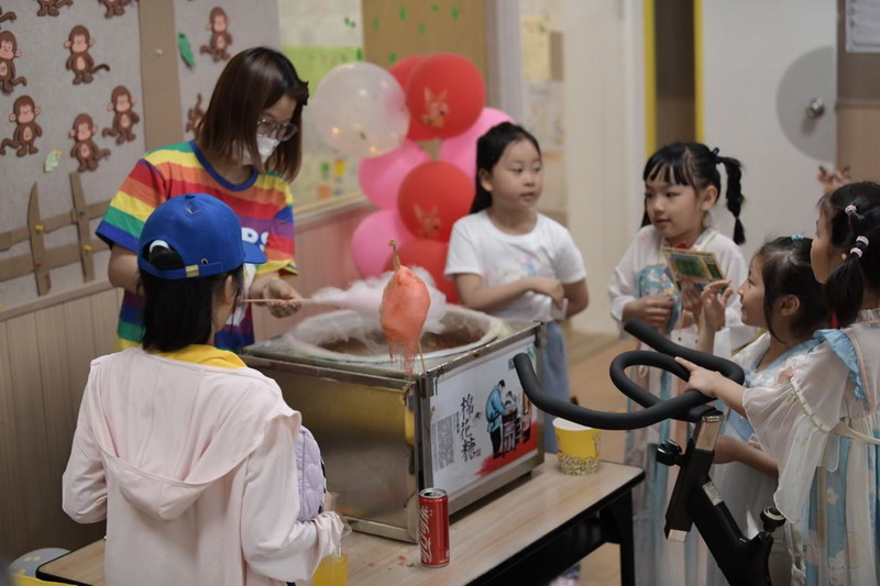 為了籌集更多的愛心善款,爸爸們使出了十八般武藝來吸引小顧客,吆喝聲、叫賣聲此起彼伏。