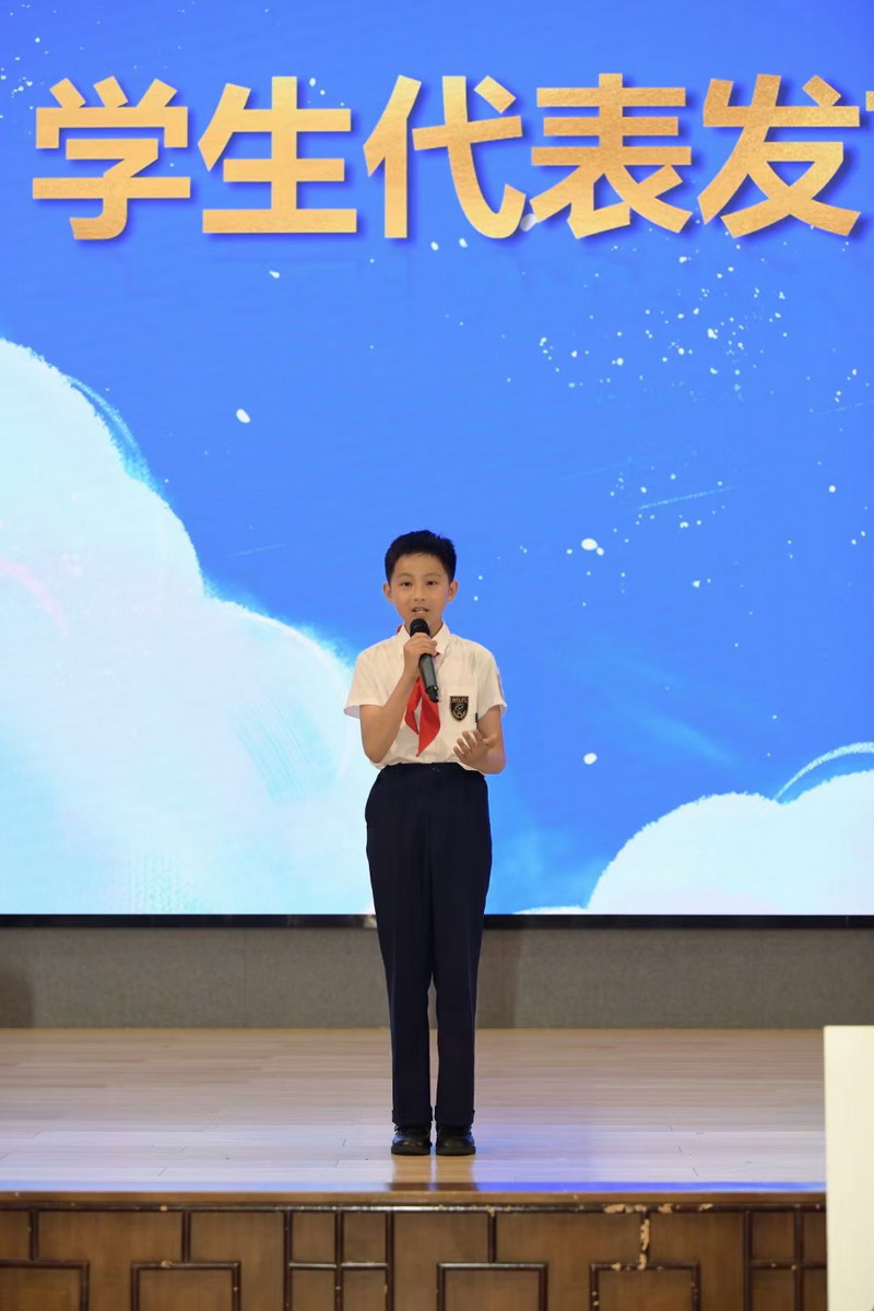 學(xué)生代表金知圻滿含深情地地感恩世外和老師們的春風(fēng)化雨、用心良苦,感恩爸爸媽媽們的辛勤養(yǎng)育和無條件的支持,感恩同窗情誼,致敬自己五年的努力。句句都是感恩,聲聲都是感謝,道不盡對母校、老師、同學(xué)的熱愛與不舍。
