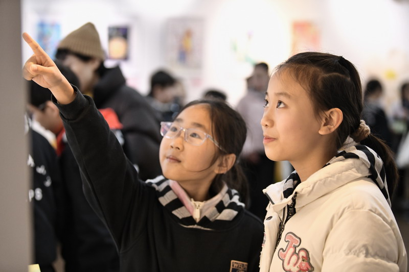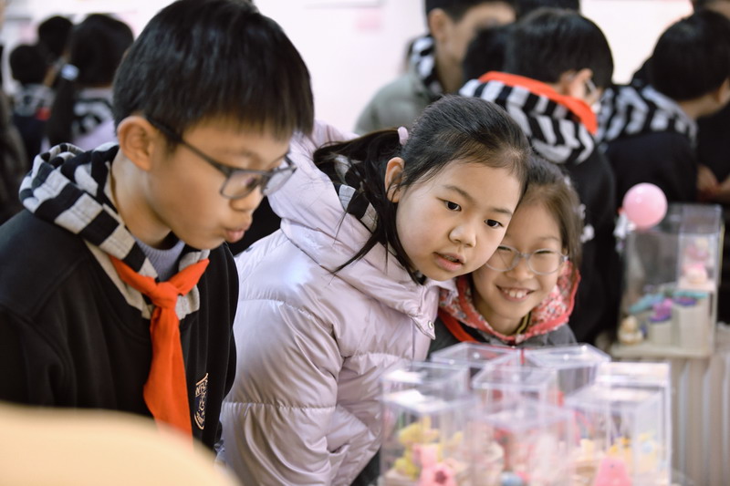 參觀過程中,孩子們興奮地分享自己的創作思路。“我用自制圓規畫了同心圓,再用AI找了星空靈感,想表現宇宙的浩瀚。”“我的立體書里,每一頁的圓形都藏著小秘密,翻開就能看到不一樣的風景。”老師們也紛紛駐足點評,肯定了大家在跨學科實踐中的用心與創意,鼓勵孩子們繼續探索不同學科的融合之美。
