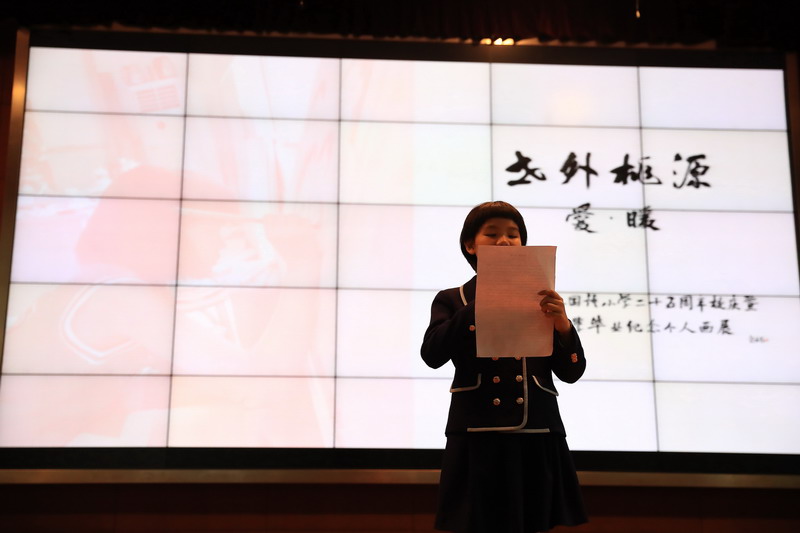 陶瓷藝術(shù)家李青教授和書畫篆刻家吳丹鷹先生當場書寫了"世外桃源"、"桃李芬芳",獻禮世外小學25周年校慶。