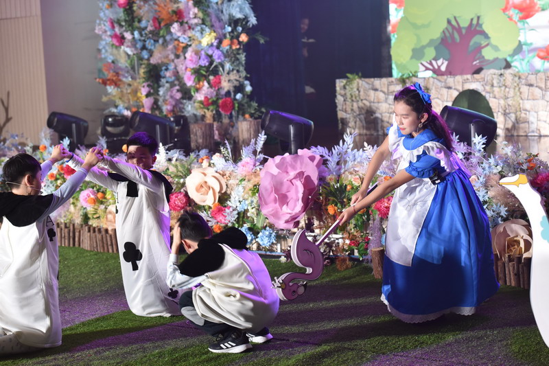 The reason why we choose the popular English Fair Tale is that we hope the children could be brave and naive just like Alice. The interaction between the people and the things around us is unpredictable. While we are on the growth path, we should keep exploring, and witness the miracles in the world.