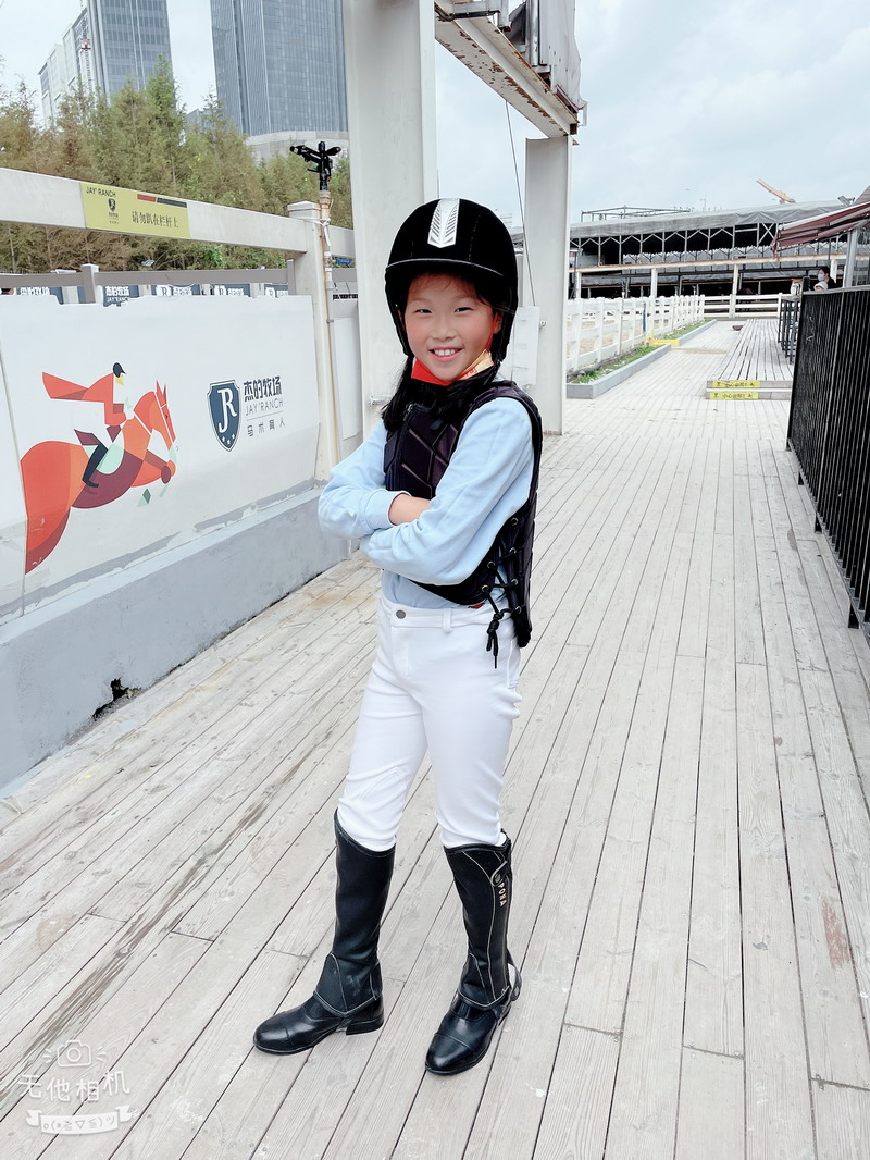 上馬前同學們還要學習護具的穿戴,護具可以很好地保護我們的身體,這一步千萬不能少。Before riding the horse, they should wear the right equipment, which will protect themselves.