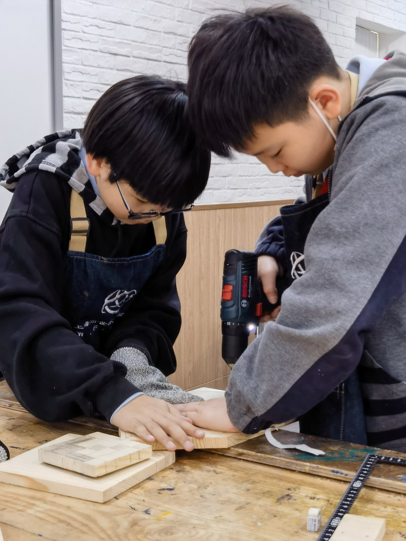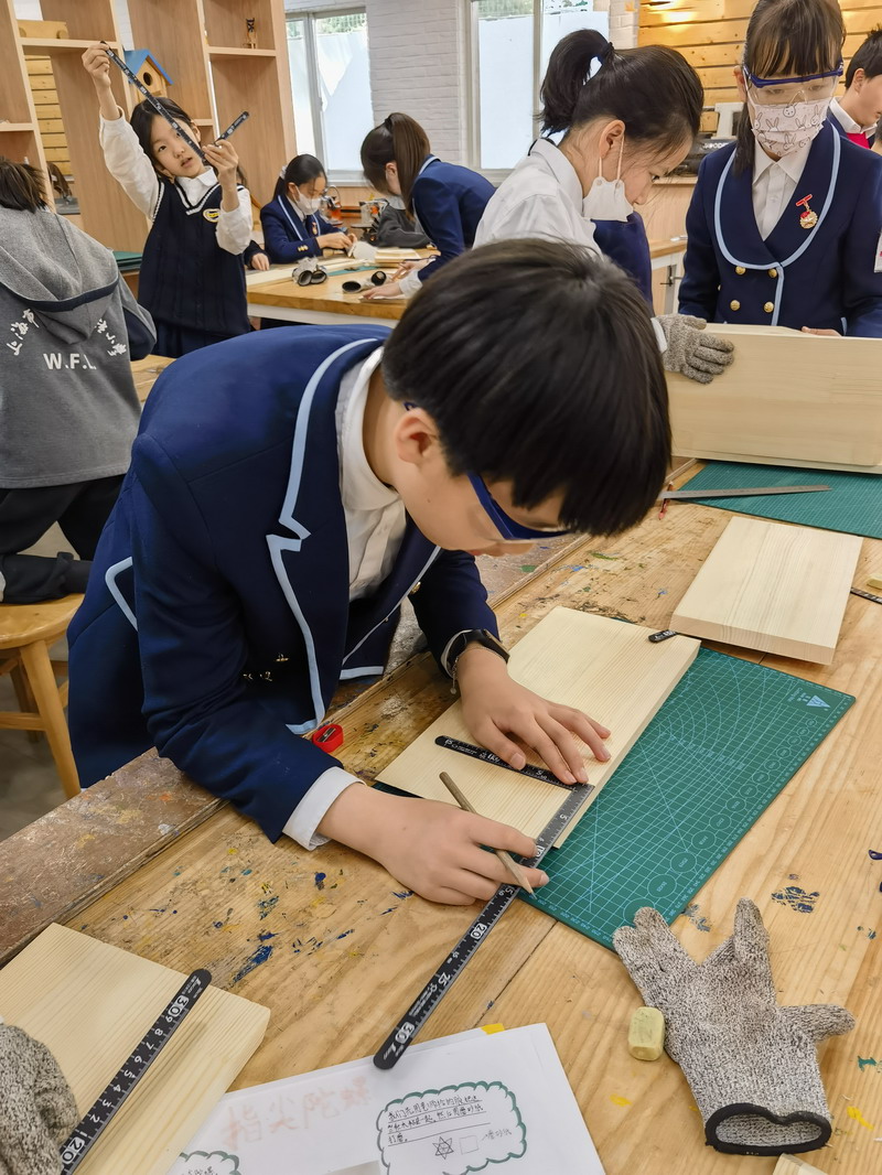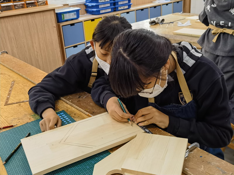 同學們兩人為一組,從測量、切割、打磨、組裝到涂色,都親手完成。