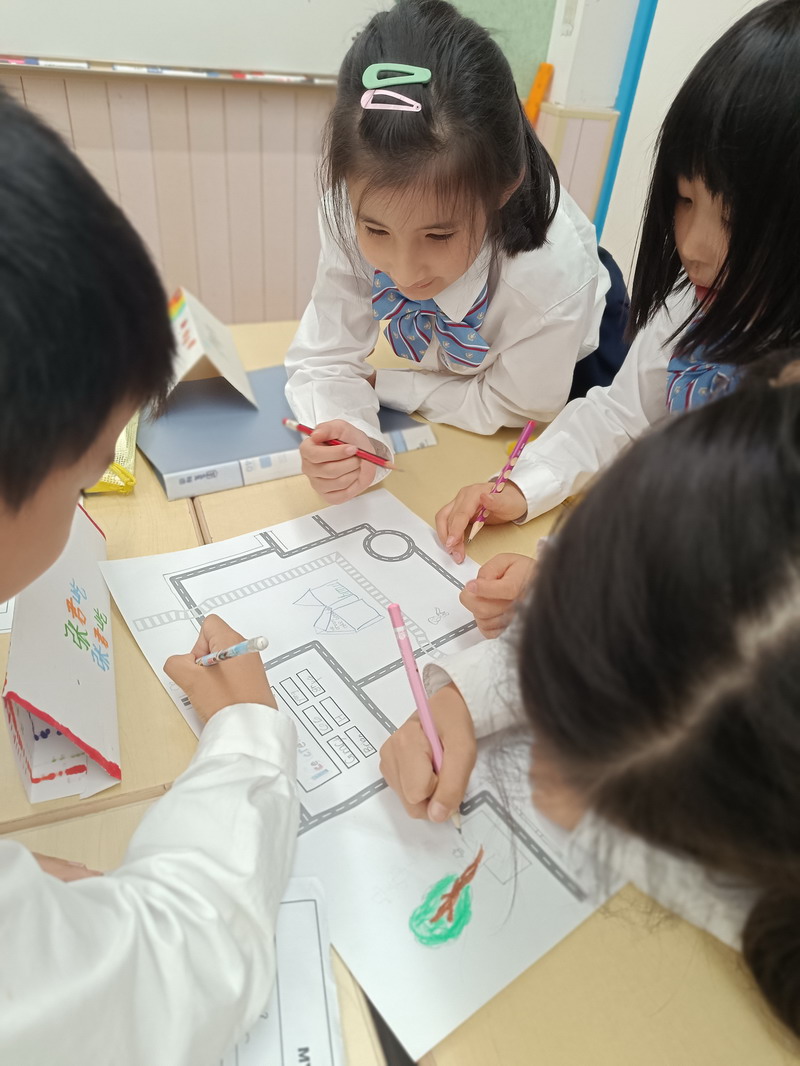 小朋友們在外教老師的帶領下認識社區里的人、地點和交通工具。通過討論和頭腦風暴,他們掌握了構成我們日常生活基礎的錯綜復雜的關系網。