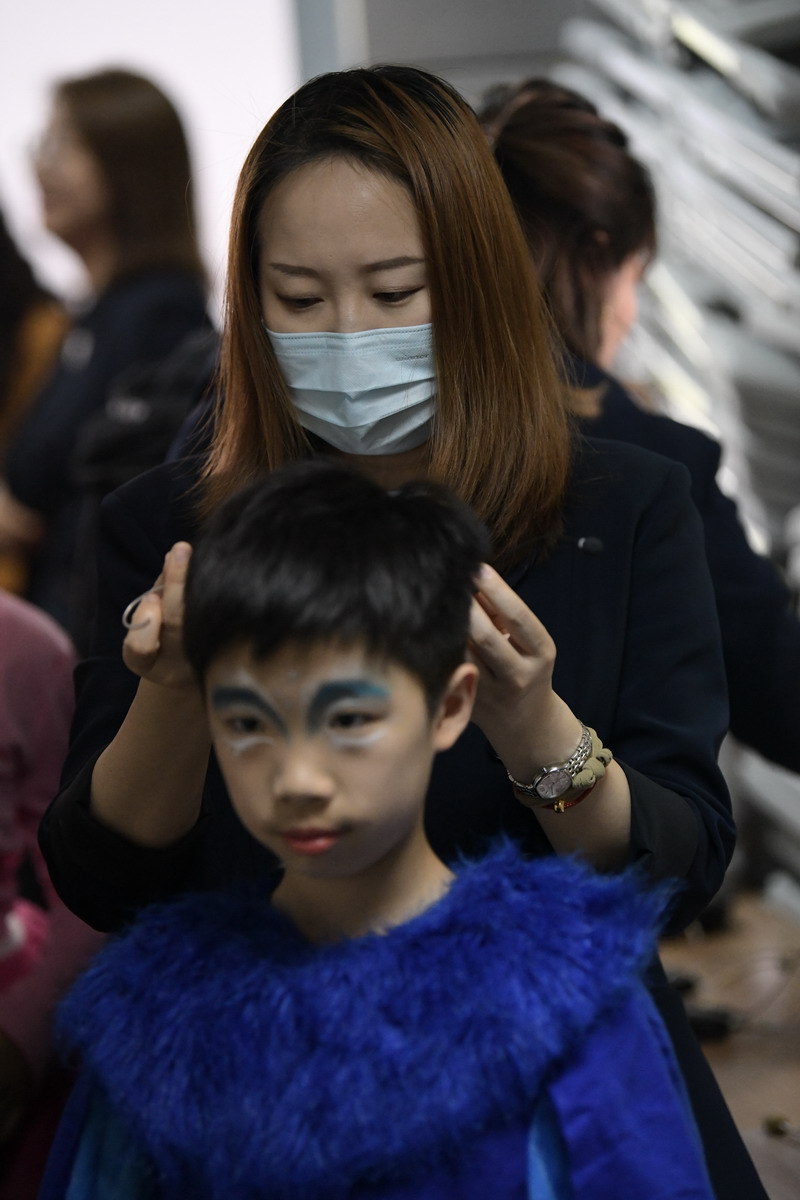 一場大戲凝聚了全體師生的智慧與心血。群像動物在形體陶老師的舞蹈訓(xùn)練后,盡情展現(xiàn)了草原動物的和諧之美,廣袤草原的壯麗之美。燈光音響在一次次大聯(lián)排中調(diào)整完善,精益求精。