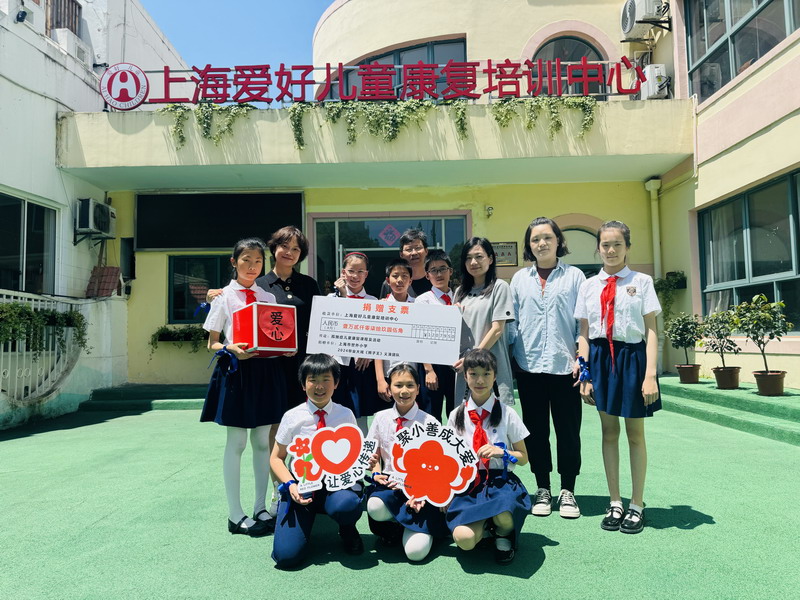 5月18日上午,雙語部五年級師生代表來到了上海愛好康復培訓中心,將演出所籌共計12079.50全部捐出,用于上海愛好康復培訓中心對孤獨癥兒童的培訓課程和活動。