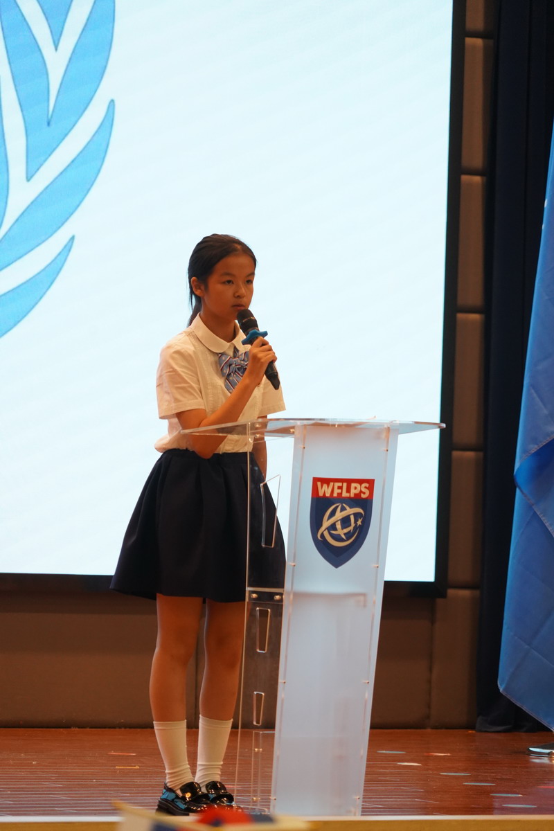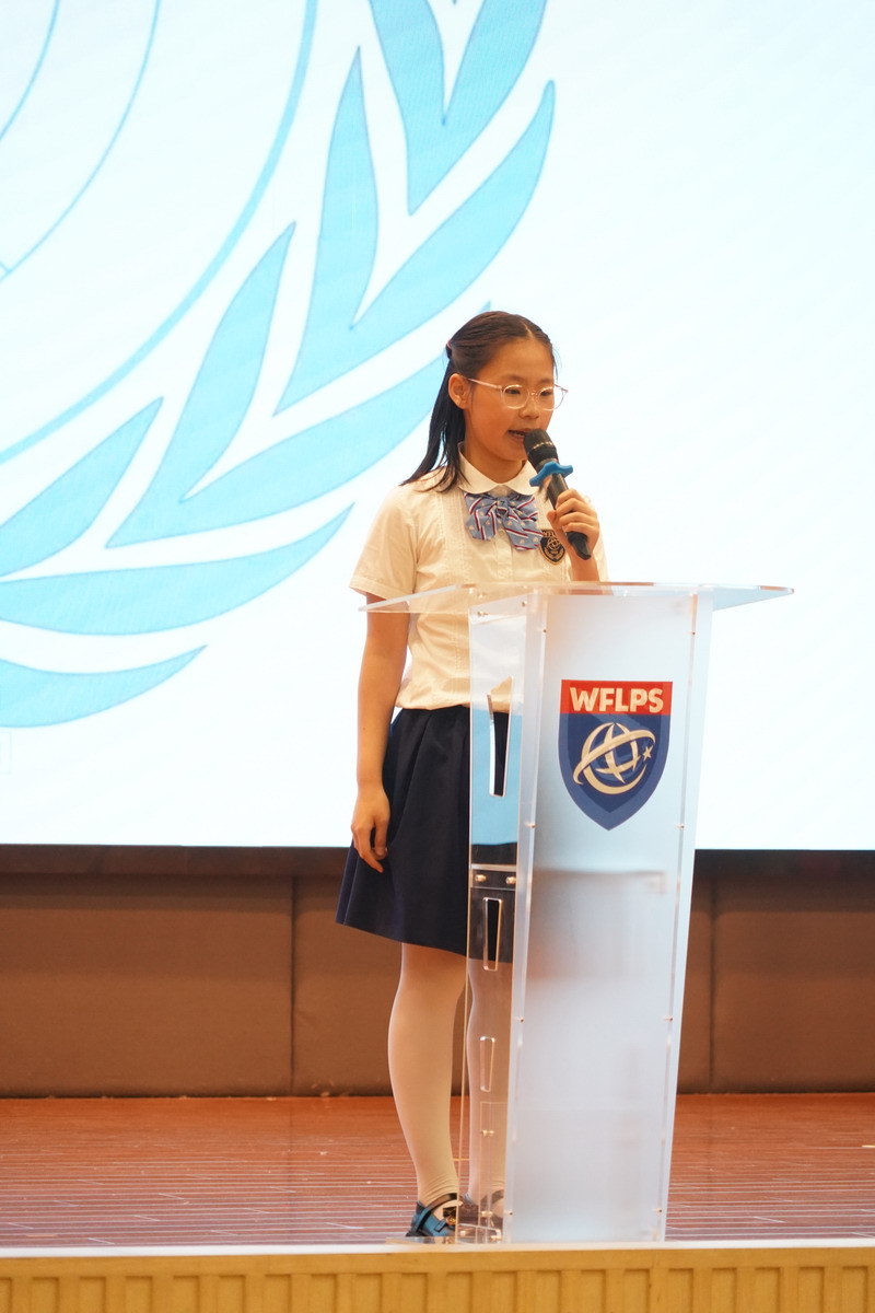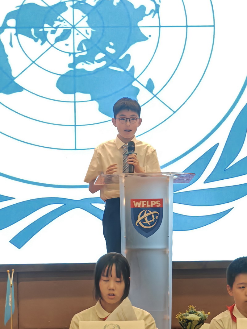 在世外小學模聯大會的舞臺上,雙語部五年級的學生們展現出了令人矚目的風采。經過前一階段對國家資料的深入搜集和精彩展示,他們馬不停蹄地投入到班級分會的緊張籌備中。 今年的模聯大會,我們聚焦了四個重要的主題:Ending poverty through education 教育--擺脫貧窮最有效的手段;Protecting endangered wildlife 保護瀕臨絕種的野生動物; Social inclusion for the elderly 多措并舉促進老年人的社會融入與發展;Food security 食品安全。