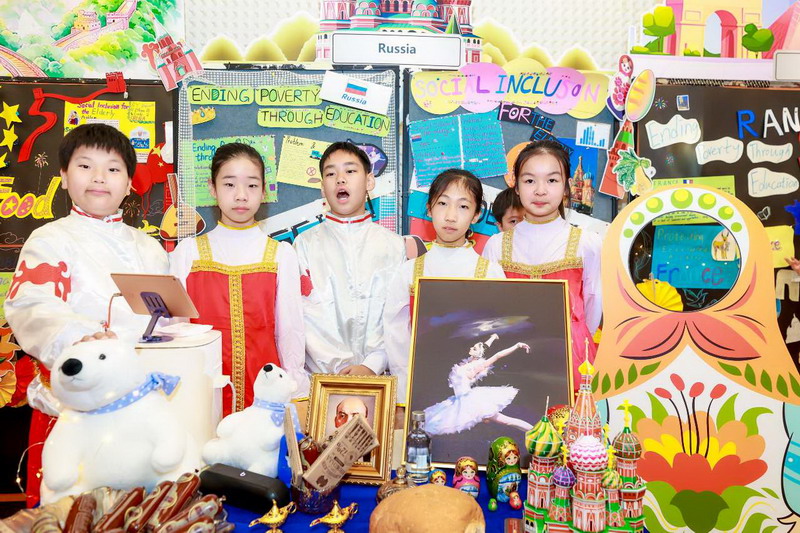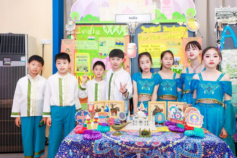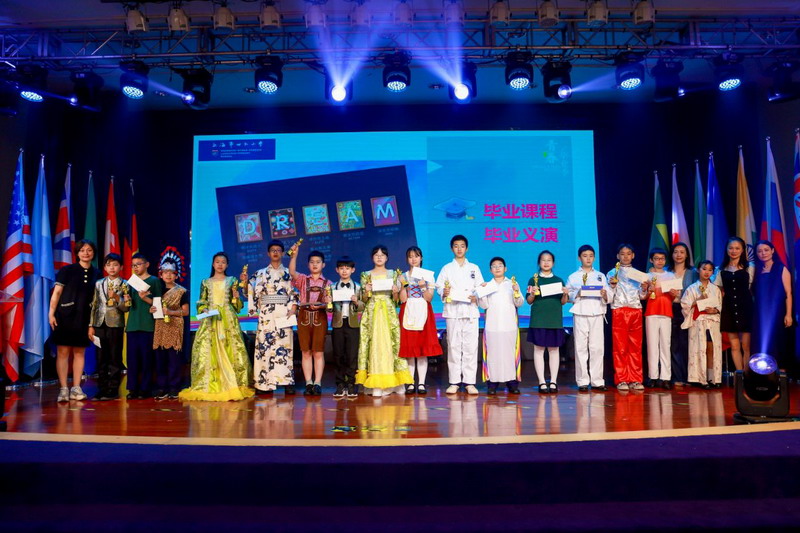 畢業(yè)課程中,同學(xué)們領(lǐng)略了世界文化的博大精深,采擷了語(yǔ)言文字的趣味盎然。他們身著各國(guó)服裝,在精心設(shè)計(jì)的畢業(yè)展板前,向來(lái)賓介紹畢業(yè)課程取得的成果。