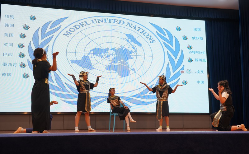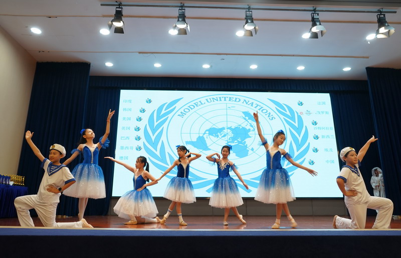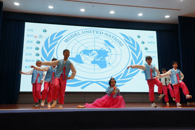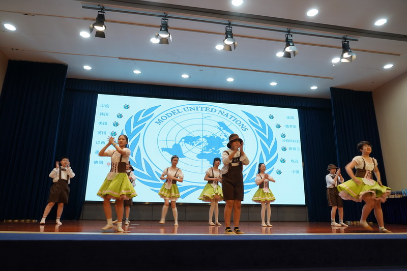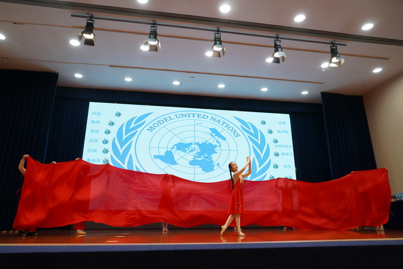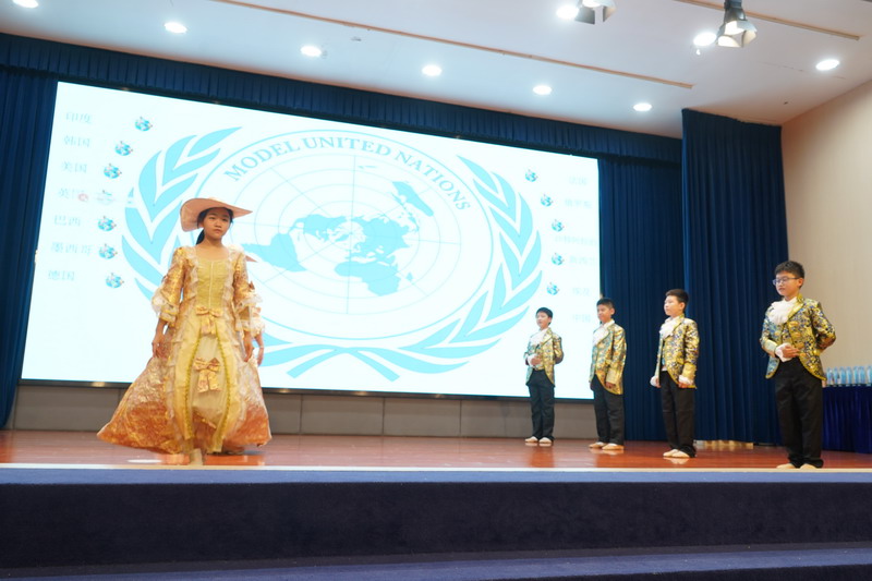 學生以“模聯國家”為單位,揮舞著象征多元與友誼的旗幟,昂首“March in”,瞬間點燃了全場的熱情。學生用自信的舞姿,詮釋著世界文明的斑斕交響。