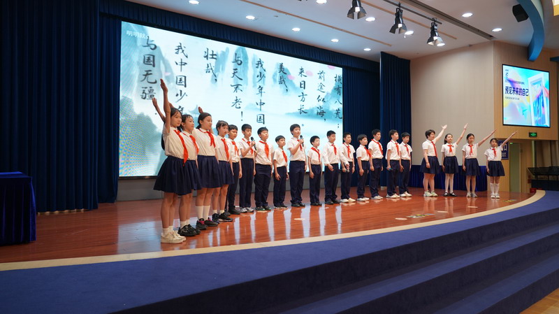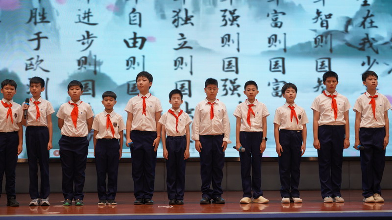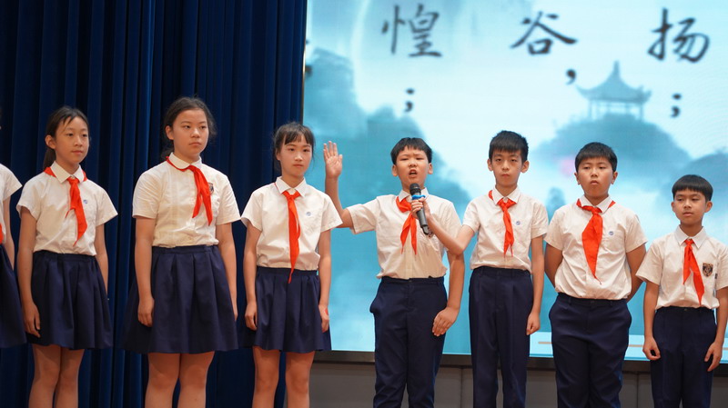臺上臺下朗誦梁啟超先生的《少年中國說》震撼人心。少年們奮發圖強,將成為祖國的棟梁!表達著“鷹擊天風壯,鵬飛海浪春”的少年志向!