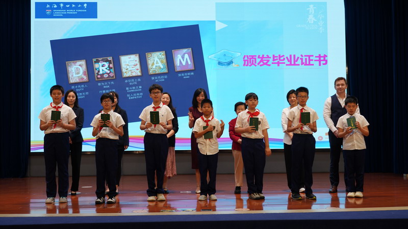 導語:六月的暖陽,溫柔地親吻著世外校園的每一片綠葉,也照亮了雙語部五年級學生“預見未來”的成長征途。2025年夏天,一場以“Foreseeing My Future 預見未來的自己”為主題的畢業盛典,在交織著不舍與蓬勃的期待中,深情鐫刻下了童年與青春交匯的璀璨華章。