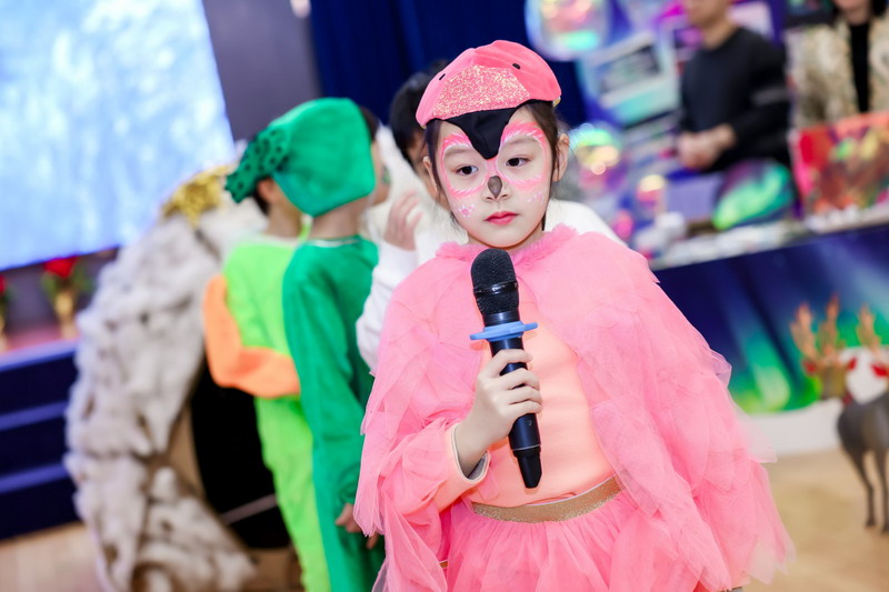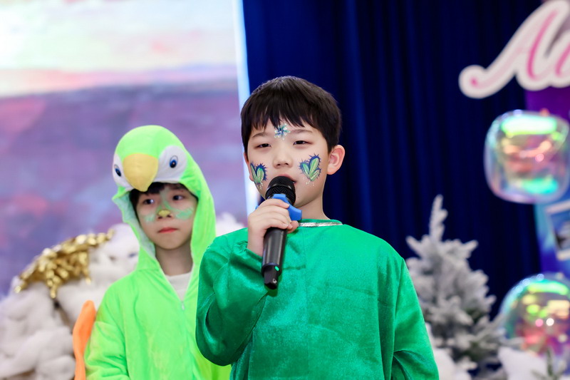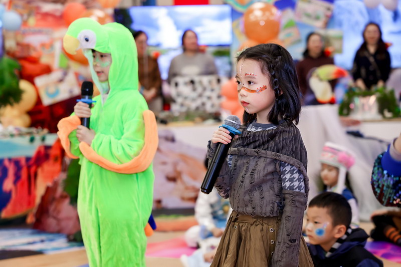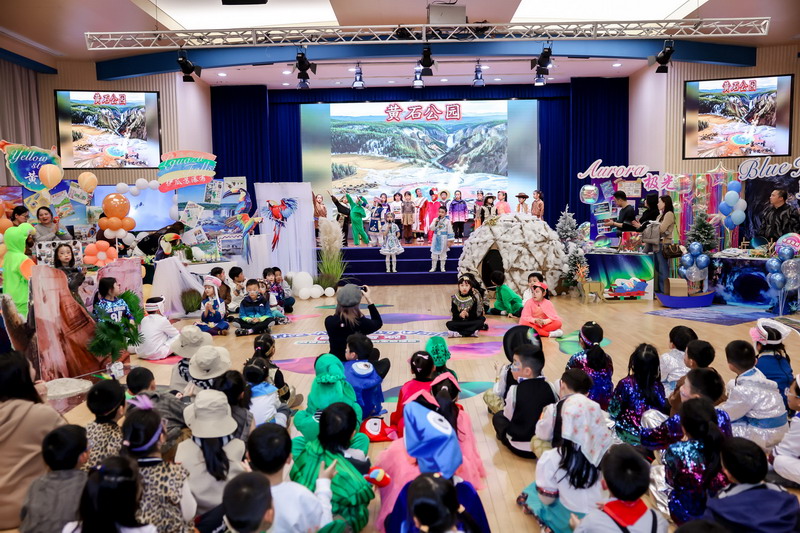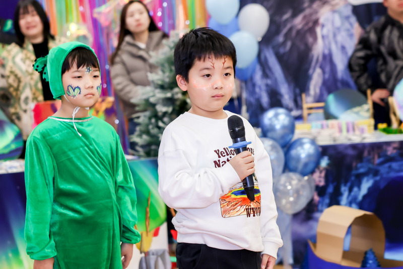 歌聲落處,四位小主持人踩著童聲的節(jié)拍登臺,清亮的嗓音如撥響的銀鈴:“今天的體育館熠熠生輝,我們仿佛置身童話的世界,周游于神秘的海洋,在世界各地的自然奇觀里盡情徜徉。”全場的期待化作熱烈的掌聲,大家一起拉開“探索自然”的序幕。