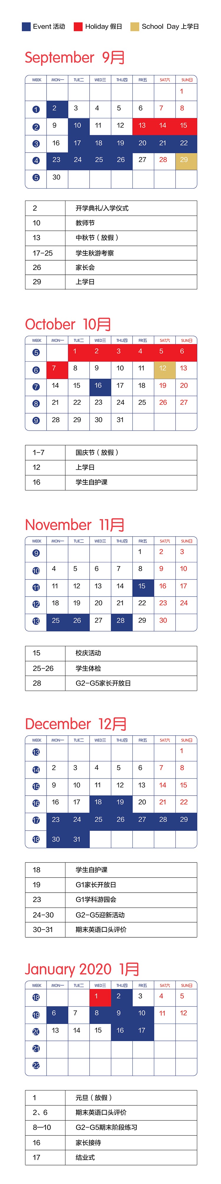 境內部2019學年第一學期校歷
