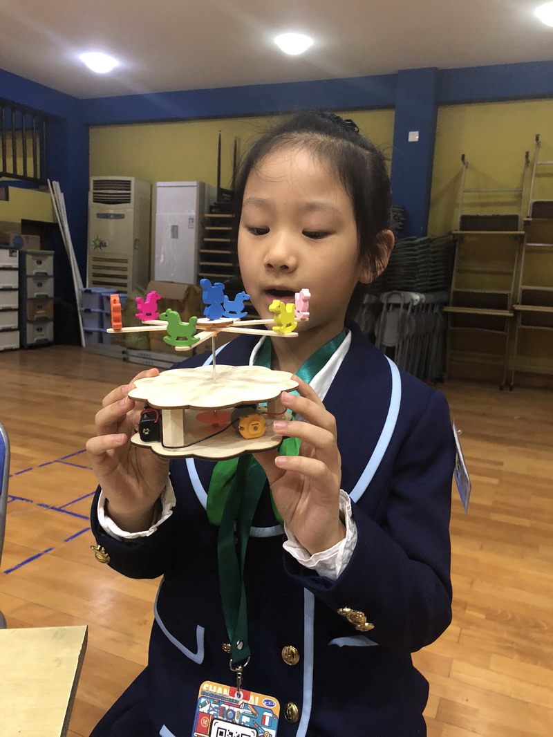 本次二年級的表達環節是讓每個學生介紹自己制作的一件手工作品。這是新部編教材中口語交際的一個內容。你以為小朋友只是說一個自己疊的小紙工?做的小模型?那你真的是小看了世外寶寶們的腦袋瓜和巧手了!自制液壓儀、自動旋轉木馬、電路大燈泡……各種腦洞大開的小制作通過二寶們的流暢介紹讓你不得感嘆:"奇思妙想"像是每個世外孩子的生命特質,太精彩!