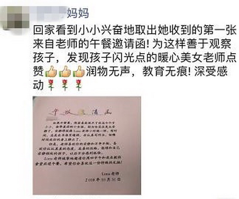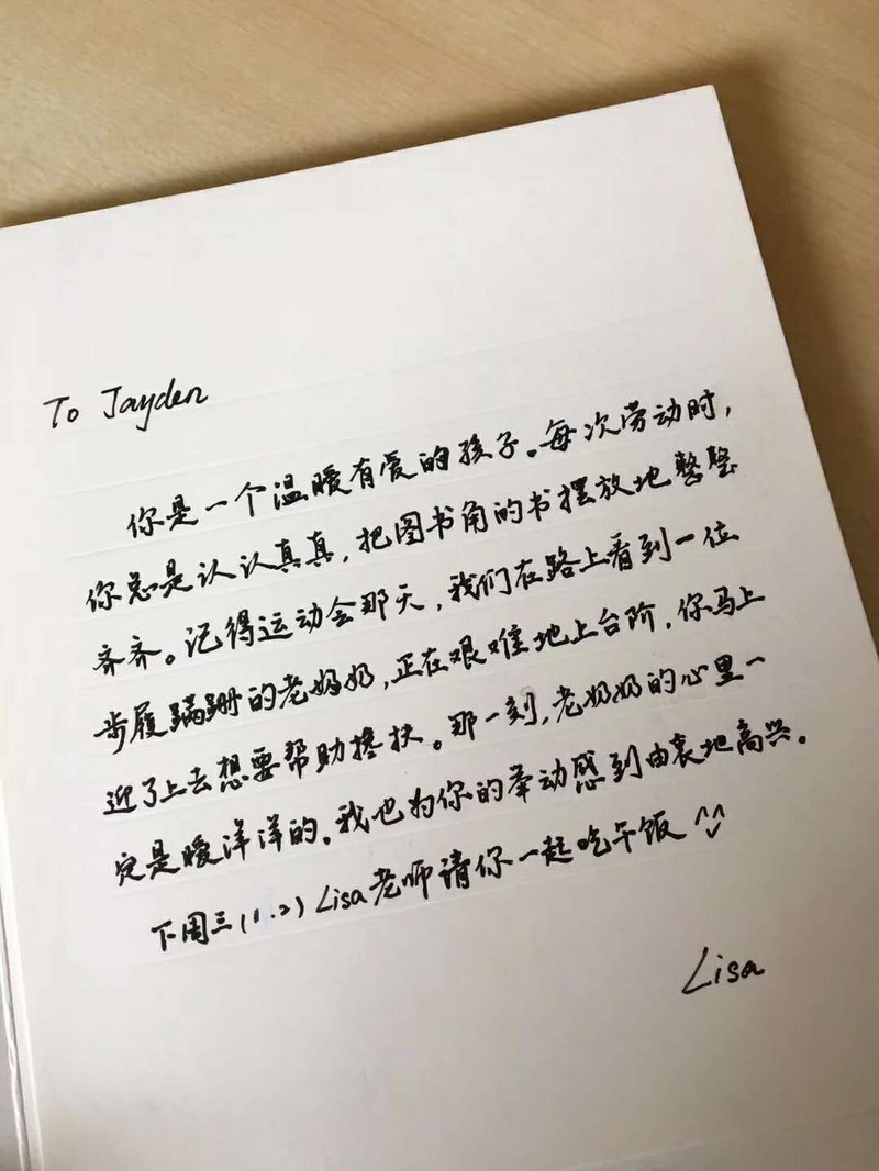 每一位受到老師邀請的孩子,都會收到一份特殊定制的邀請卡,老師們會在邀請卡上寫下邀請理由:或許是一件關愛他人的小事,或許是一個不經意間的善舉,或許是一直默默付出的堅持。